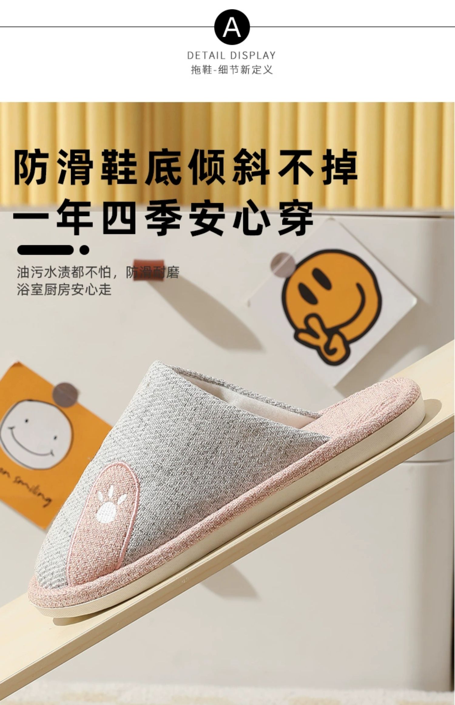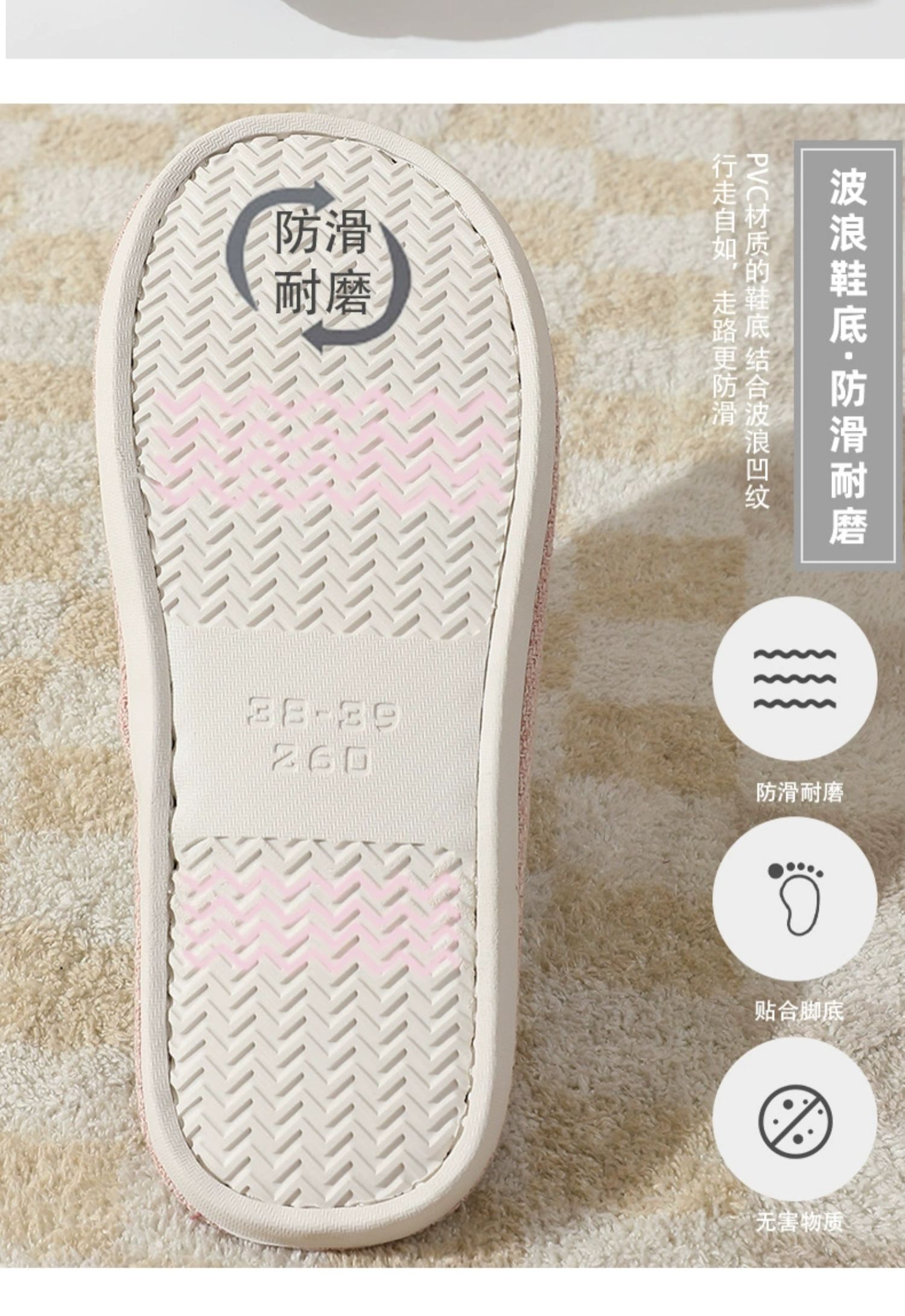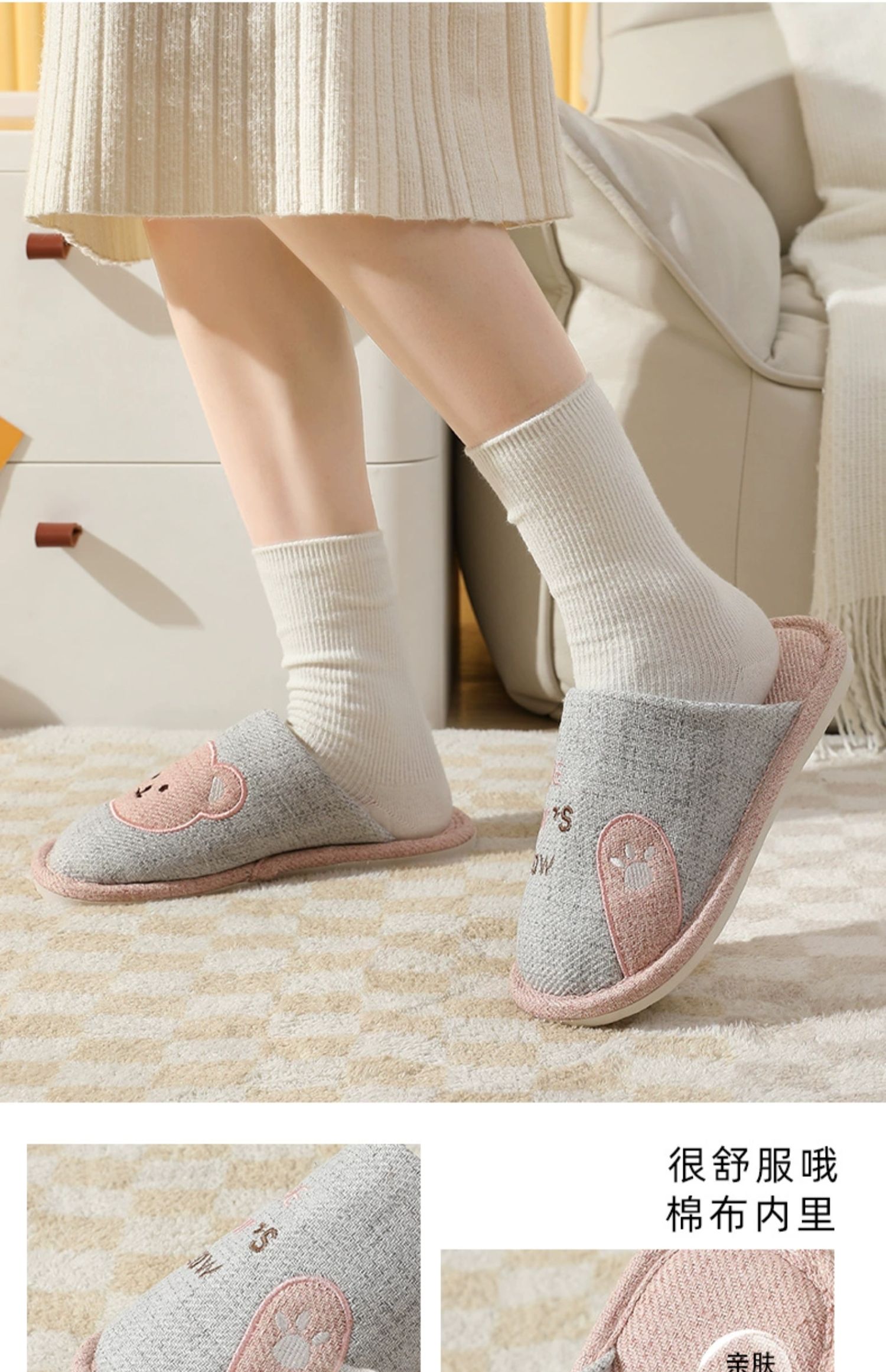 かわいい風四季包頭綿布スリッパ女性春秋家庭滑り止め汗防止室内カップル軟底床メーカー