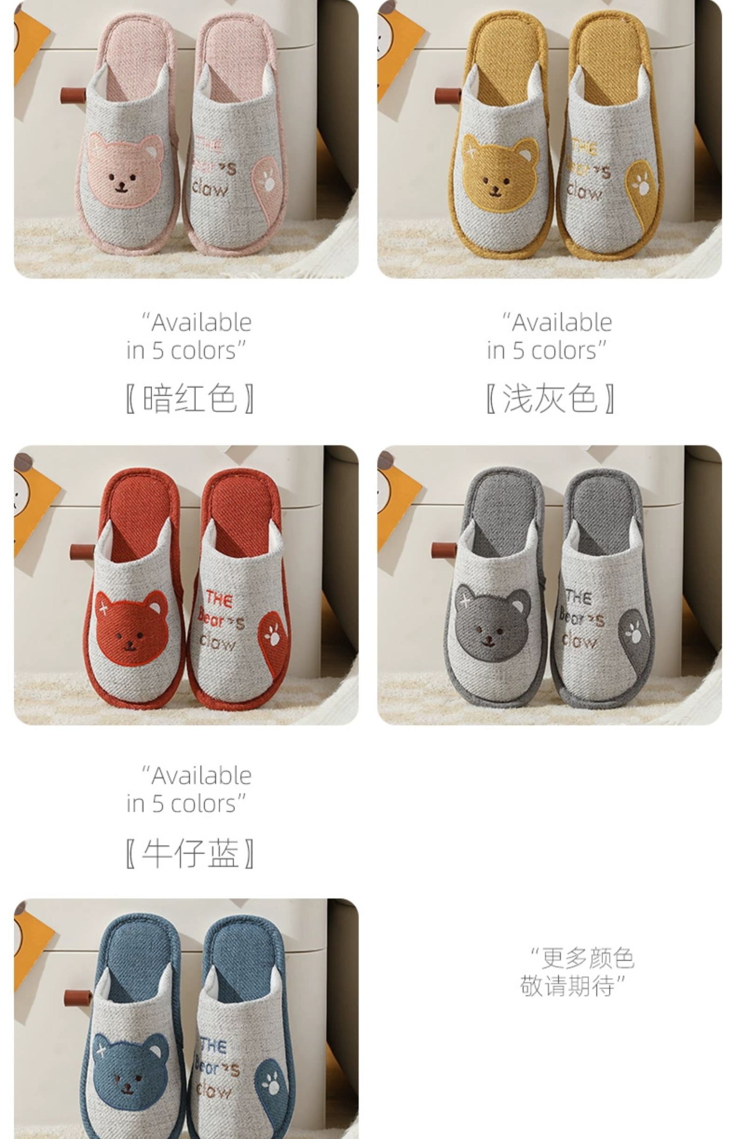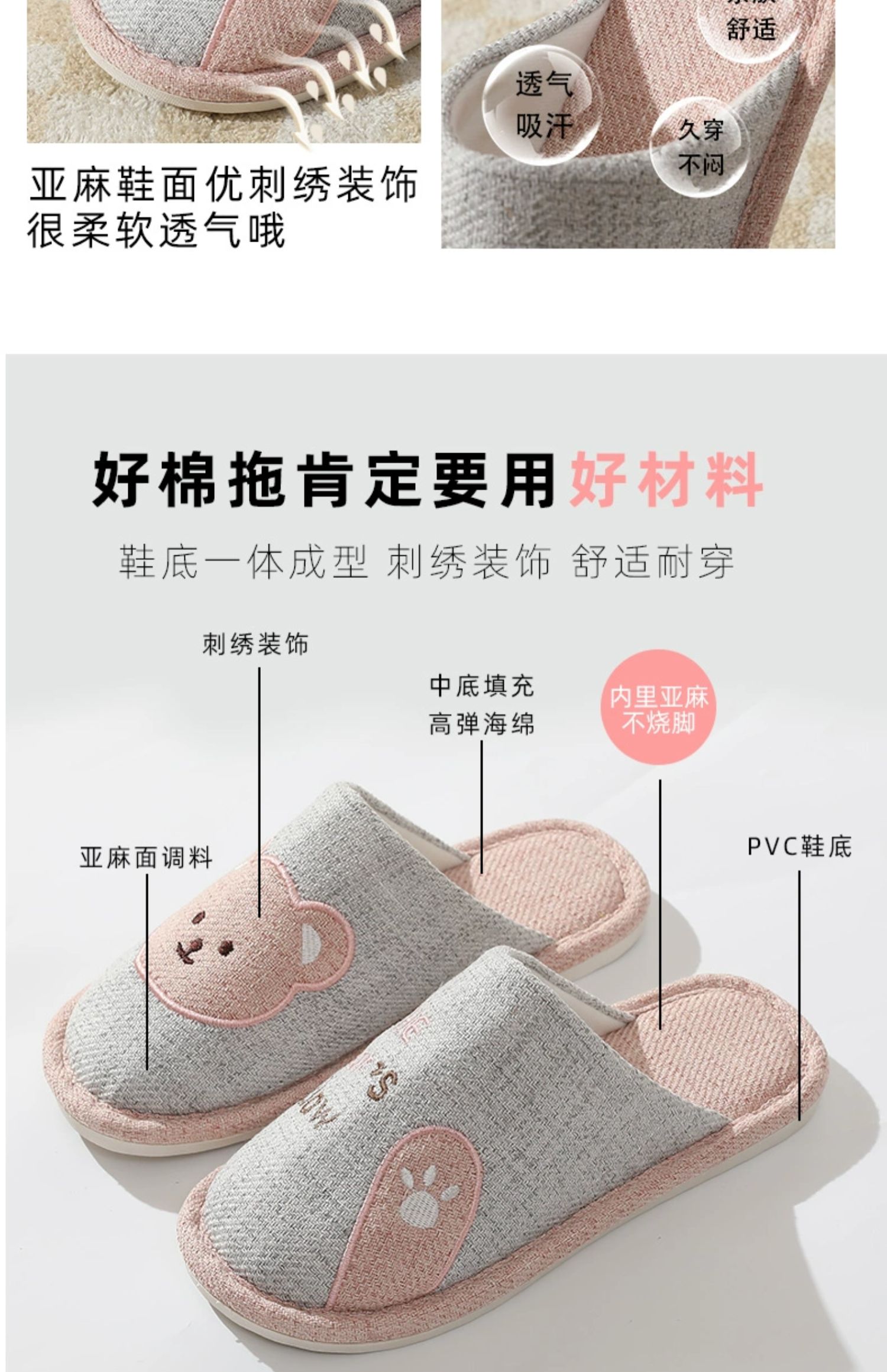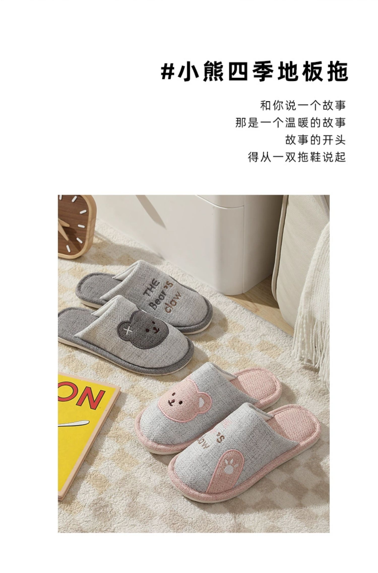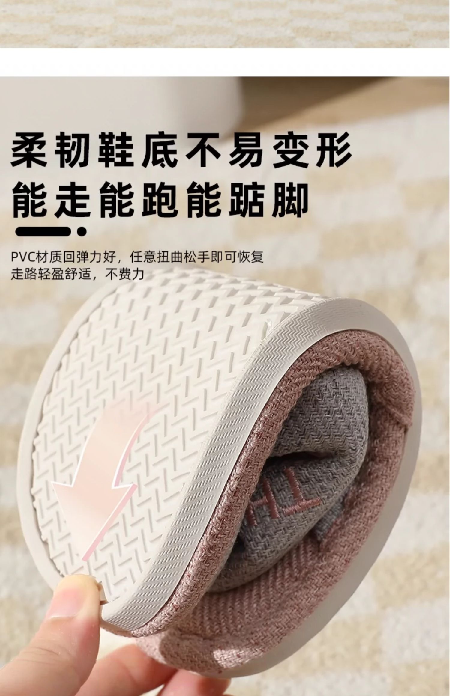 かわいい風四季包頭綿布スリッパ女性春秋家庭滑り止め汗防止室内カップル軟底床メーカー