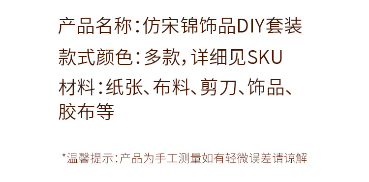 宋錦ヘアピン - 猫モチーフ手作りキット【道具一式+作り方説明書付き】,宋錦ヘアピン - 四弁花型材料キット【道具一式+作り方説明書付き】,宋錦ヘアピン - ハート型材料キット【道具一式+作り方説明書付き】,宋錦ヘアピン - 楕円形材料キット【フルセット工具+チュートリアル付き】,宋錦ヘアピン - 円形材料キット【フルセット工具+チュートリアル付き】,宋錦ヘアピン - 三角形材料キット【フルセット工具+チュートリアル付き】,宋錦ヘアピン - 五芒星型材料キット【道具一式+作り方説明書付き】,宋錦ヘアピン - 長方形型材料キット【フルセット工具+チュートリアル付き】,宋錦ヘアピン - 棒状型材料キット【フルセット工具+チュートリアル付き】,スタイルミックスヘアイヤリングパッケージ,四弁花イヤリングセット,扇形イヤリングセット,四方 - イヤリングセット,ラウンドイヤリングパッケージ,宋金髪ロープ猫スタイル素材パッケージ [ツールのフルセット + チュートリアルを含む],宋錦髪飾り - ハート型材料キット【道具一式+作り方説明書付き】,宋錦髪紐 - 小判型材料キット【道具一式+作り方説明書付き】,宋錦髪飾り - 三角型材料キット【道具一式+作り方説明書付き】,宋錦髪飾り - 四弁花型材料キット【道具一式+作り方説明書付き】,宋錦髪紐 - 円形タイプ材料キット【フルセット工具+チュートリアル付き】,宋錦吊り下げ飾り - 如意錠材料キット【フルセット工具+チュートリアル付き】,宋錦ネックレス - 両面蝶素材パッケージ [ツール一式 + チュートリアルを含む],宋錦吊り飾り-両面蝶素材パッケージ[ツール一式+チュートリアルを含む],宋錦ネックレス - 両面ひょうたん素材パッケージ [ツール一式 + チュートリアルを含む],宋錦吊り飾り - 両面ひょうたん素材パッケージ [ツール一式 + チュートリアルを含む],宋錦吊り下げ飾り - 両面琵琶材料キット【道具一式+作り方説明書付き】,宋錦ネックレス - 両面琵琶材料キット【フルセット工具+チュートリアル付き】,カバー付き四弁花かんざし,カバー付き・ラブヘアピン,カバー付き - 五芒星ヘアピン,カバー付き三角ヘアピン,蓋付き猫ヘアピン,カバー付き - 丸いヘアピン,蓋付き - 長方形ヘアピン,カバー付き - 大きな楕円形のヘアピン,カバー付き - シャトルヘアピン,キャットヘアロープカバー付き,カバー付き四弁花ヘアロープ,カバー付き-Ruyiロックペンダント,片面 - 琵琶飾り,両面 - 琵琶飾り,蓋付き - 四つ葉のクローバー型ピアス(両耳用),カバー付き - 扇形のイヤリング,蓋付き - スクエアピアス(両耳用),蓋付き - 丸型ピアス(両耳用),宋錦ヘアピン/ヘアロープ ギフトボックス [5.5*2.8*8.7cm],宋錦ペンダントギフトボックス [8.3*8.3*3.5cm]