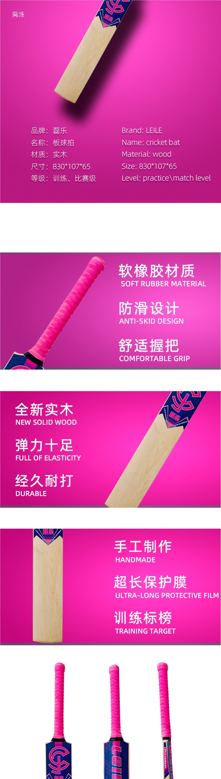 国産クリケットバット Leile 規格 初級トレーニング器具 競技用無垢材クリケットバット