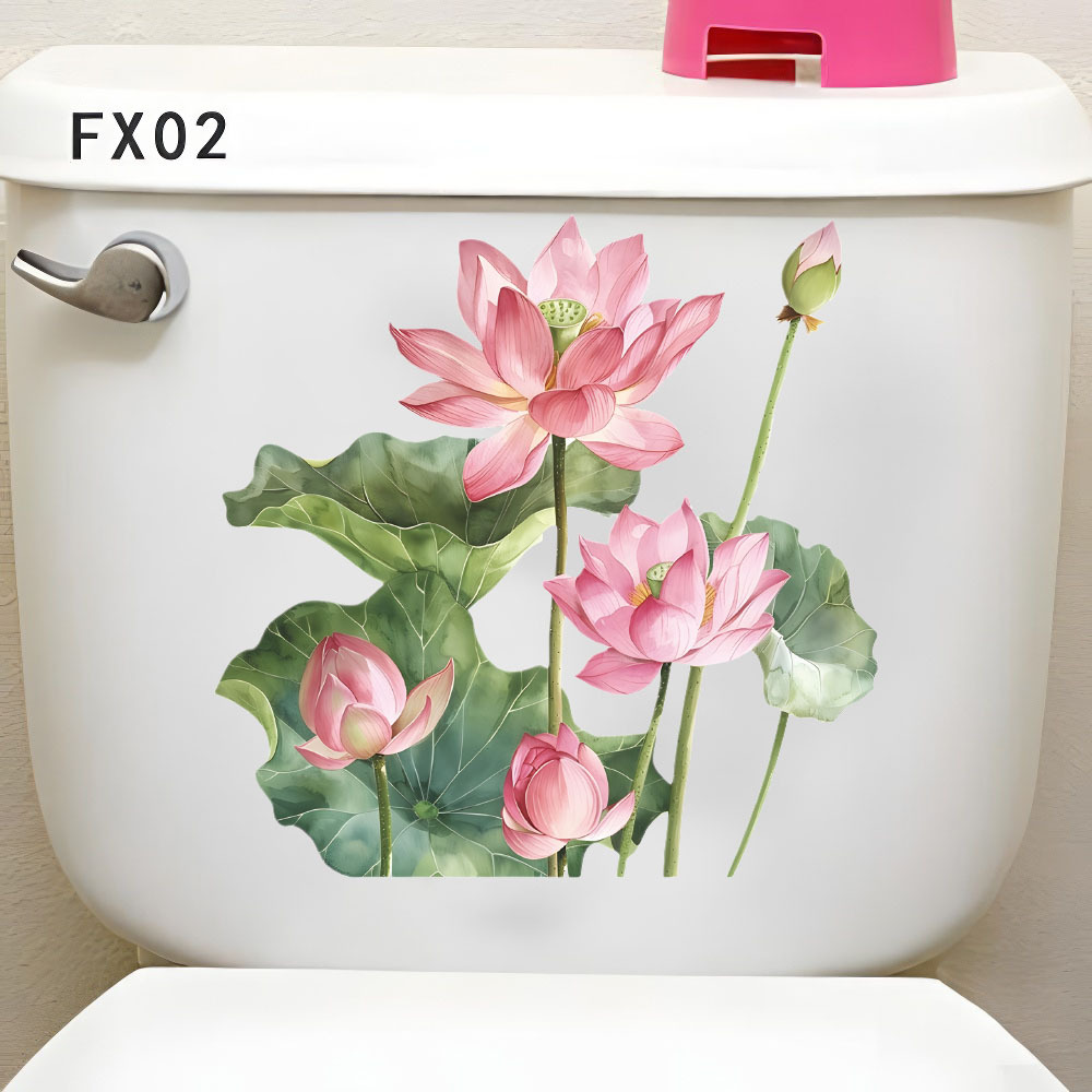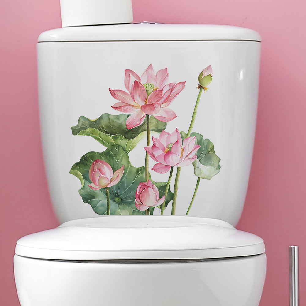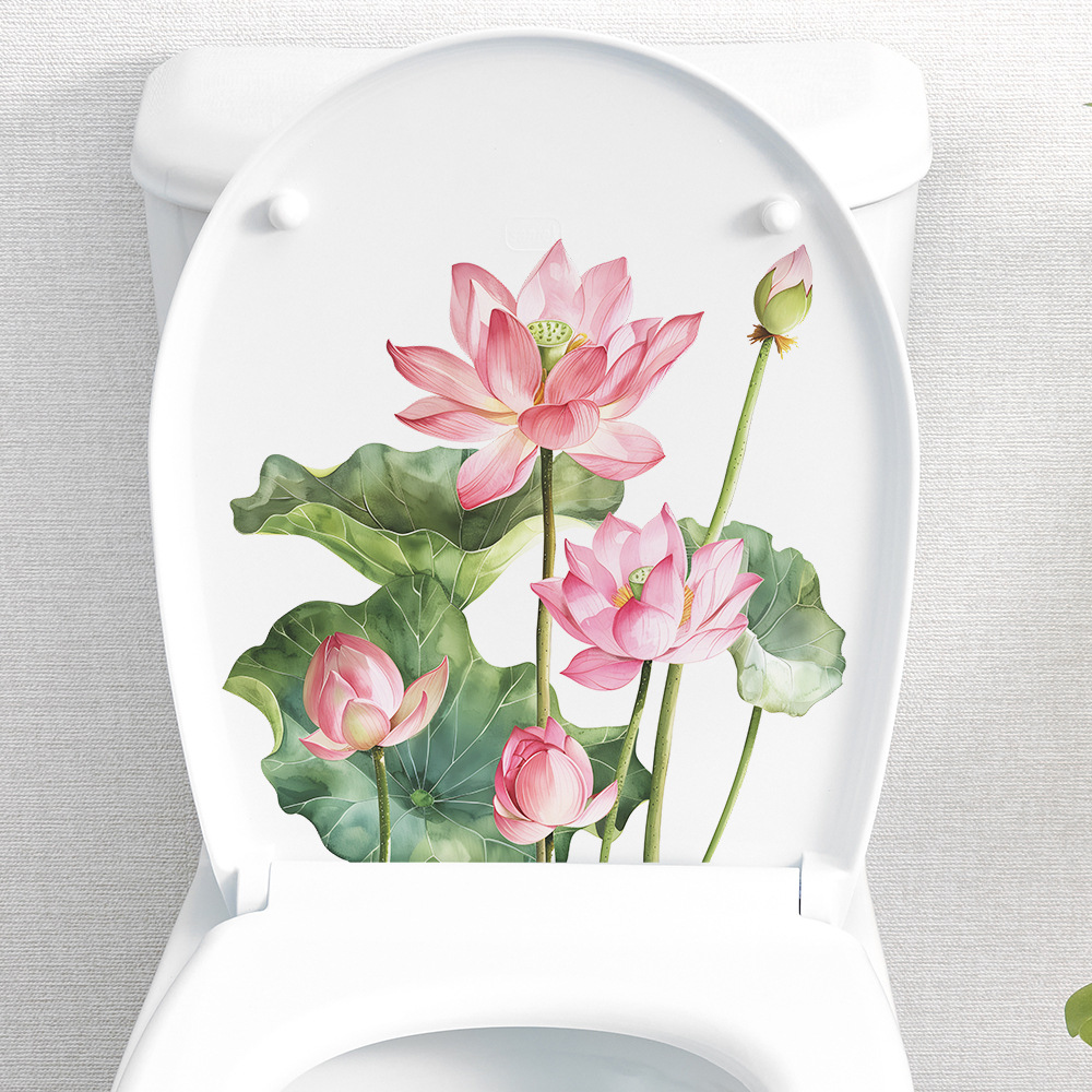 エレガントな水墨蓮ステッカートイレステッカー浴室トイレ装飾防水自己粘着壁ステッカー