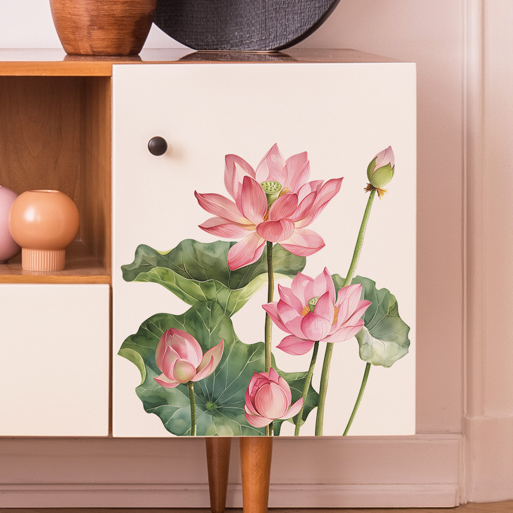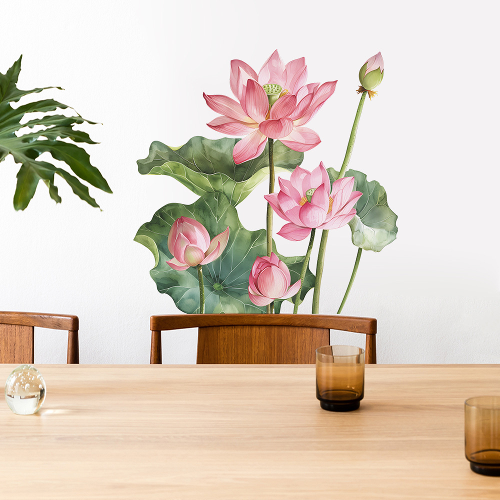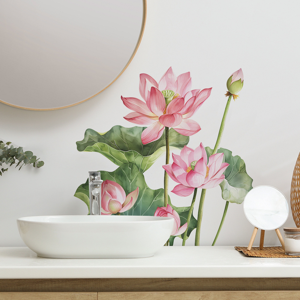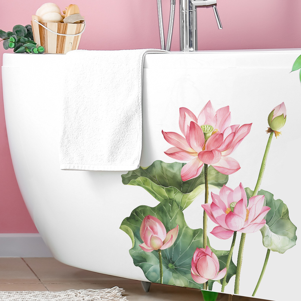 エレガントな水墨蓮ステッカートイレステッカー浴室トイレ装飾防水自己粘着壁ステッカー