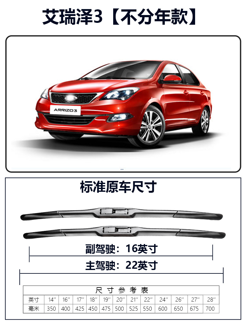 Chery Arrizo 5 ワイパーオリジナル 3/7/8 ストリップ特別なボーンレスサイレントプラスオリジナルワイパーブレードに適しています。