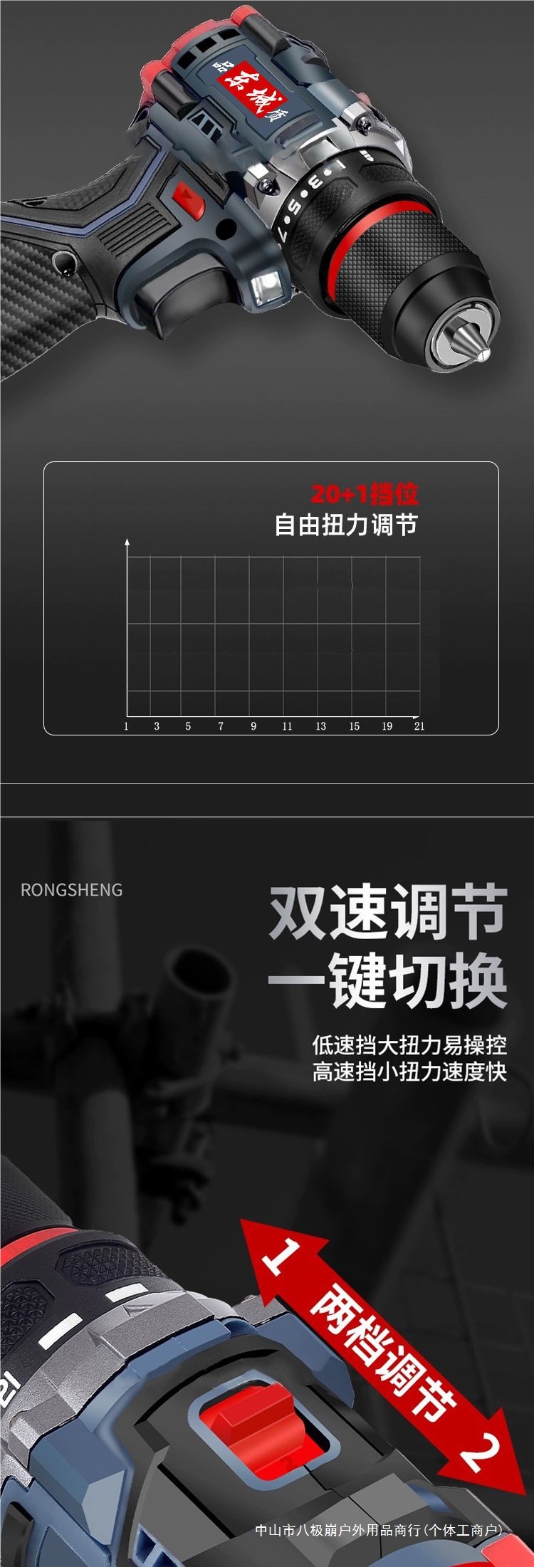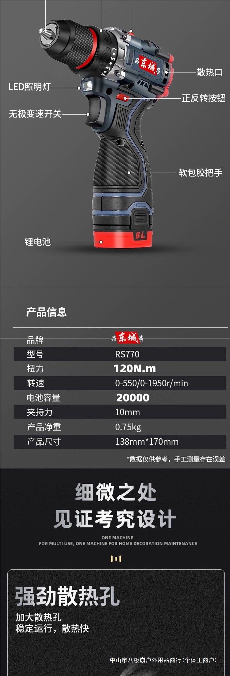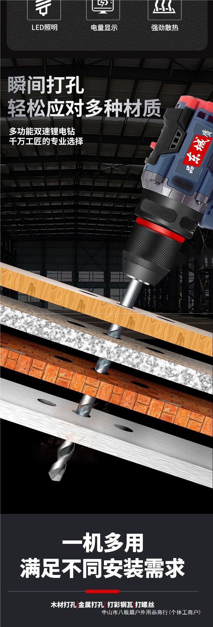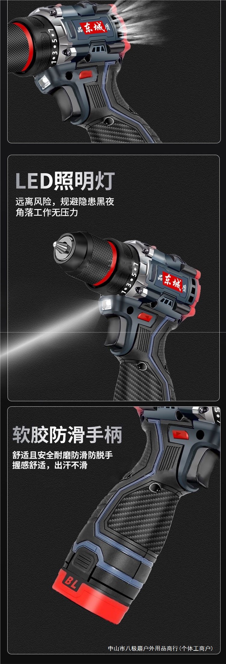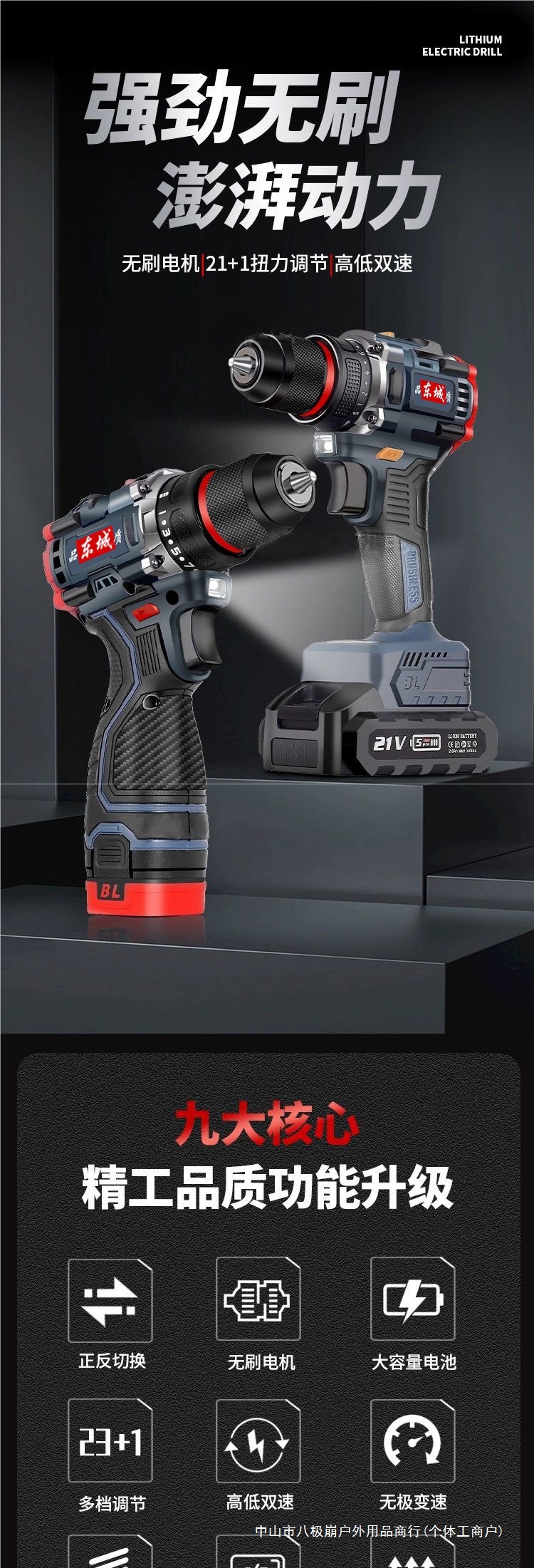 東城型懐中電灯ドリル充電式無ブラシリチウム電池ハイパワー電動小衝撃ドリル東城型スパイラル八極