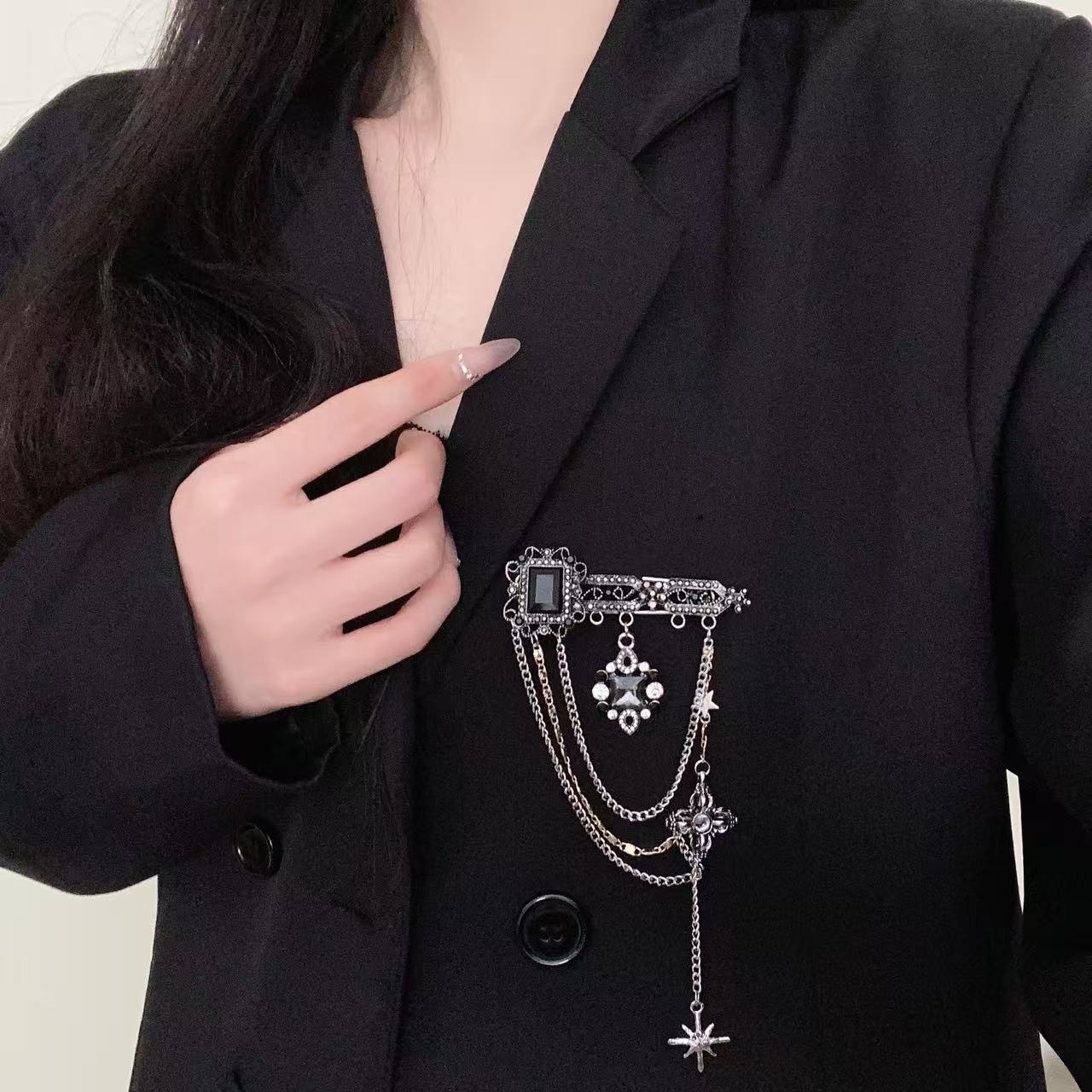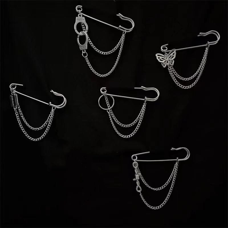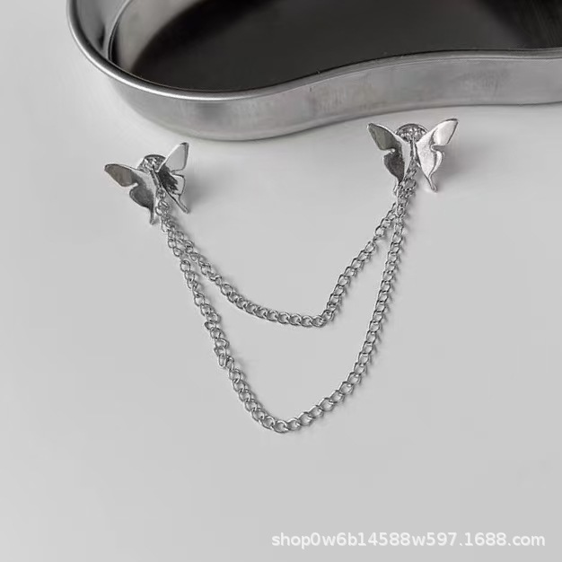 新款潮个性金属蝴蝶链条胸针女百搭简约流苏别针胸花衣服西装配饰