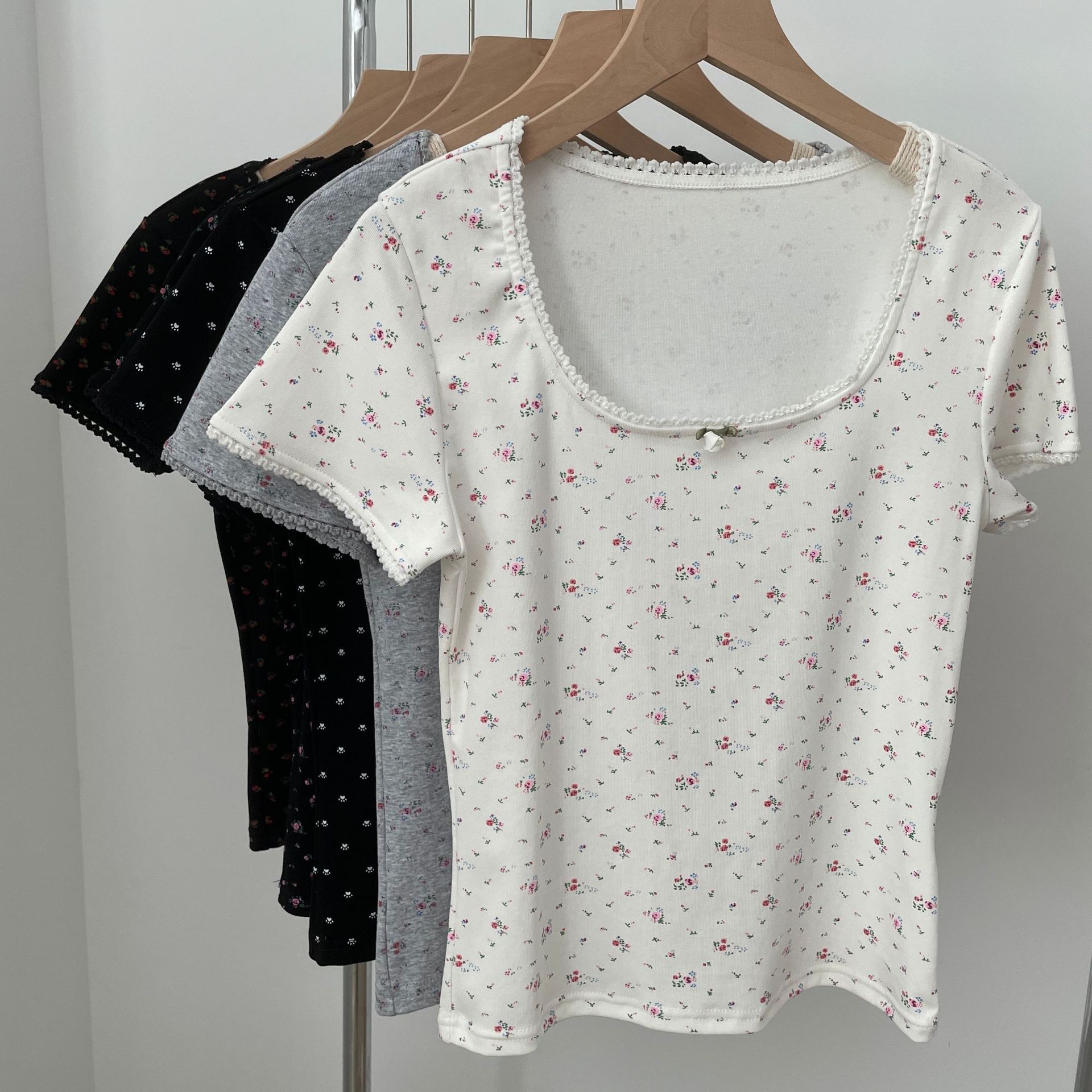 ブランディBM風砕花丸襟半袖tシャツ女性夏新作ホームウェアスリム着痩せ気品百合上着