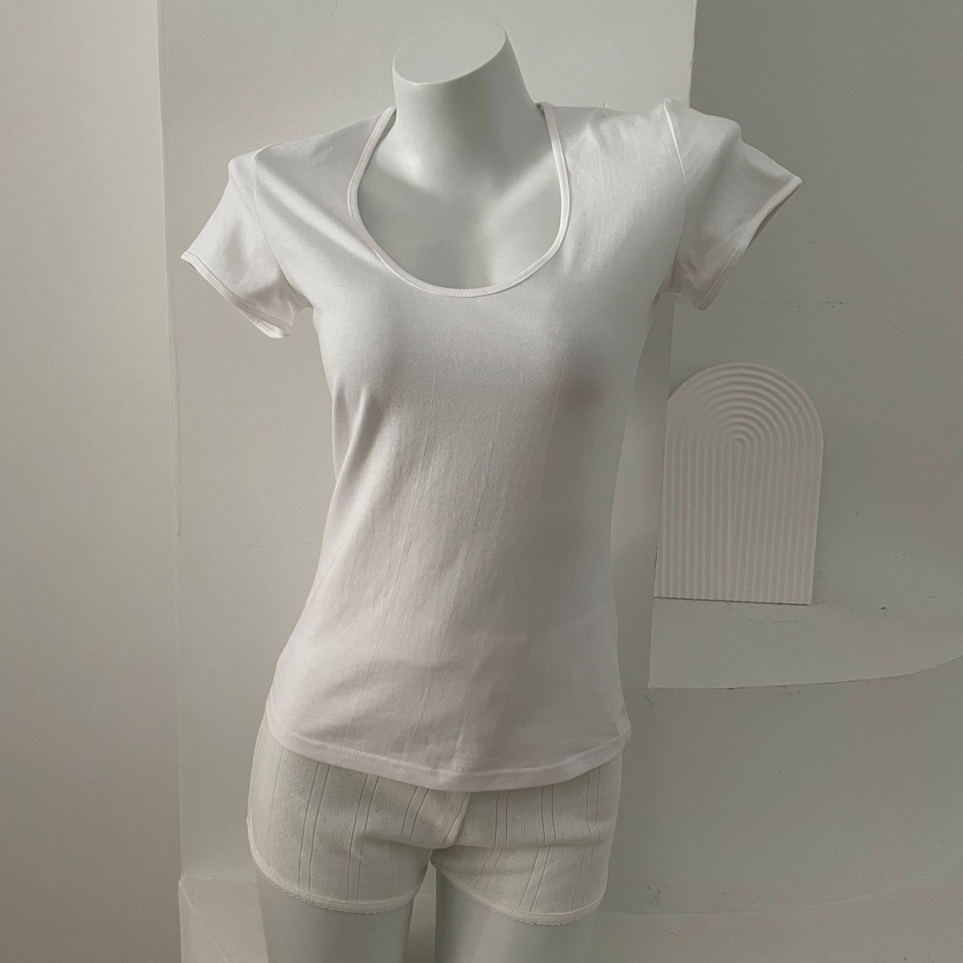 BM风纯棉简约修身U领短袖t恤女装春夏季新款韩版百搭显瘦气质上衣
