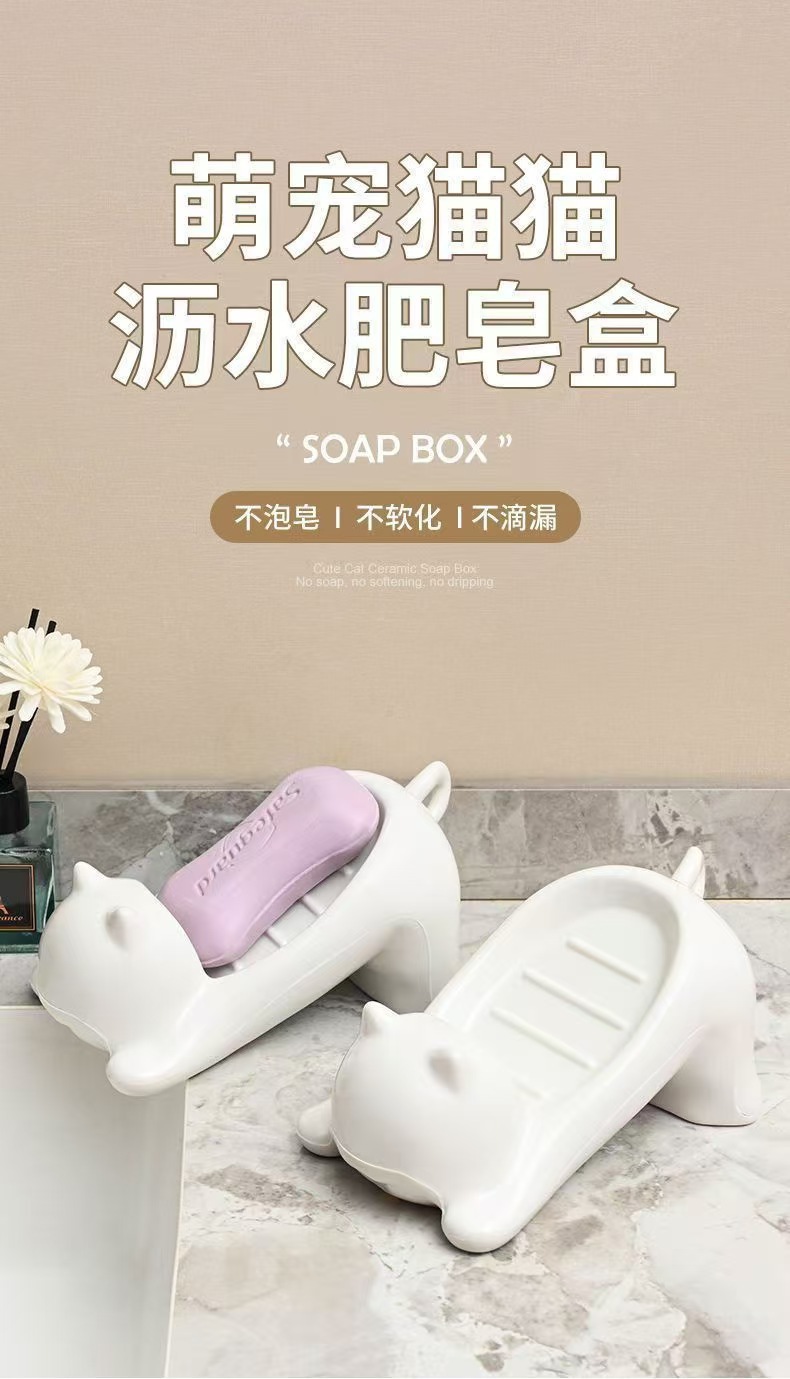 創意的でかわいいアニメの猫の石鹸の箱の浴室の石鹸の箱のトイレの水切りの石鹸の棚の新型の皿のトレー