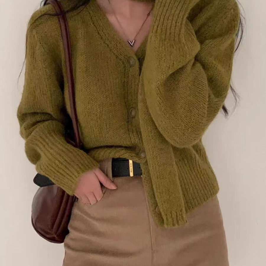 韓国風シックな冬の新作、個性的なフレンチレトロ長袖、ピュアなVネック長袖セーターコート、ネックウォーマー付き