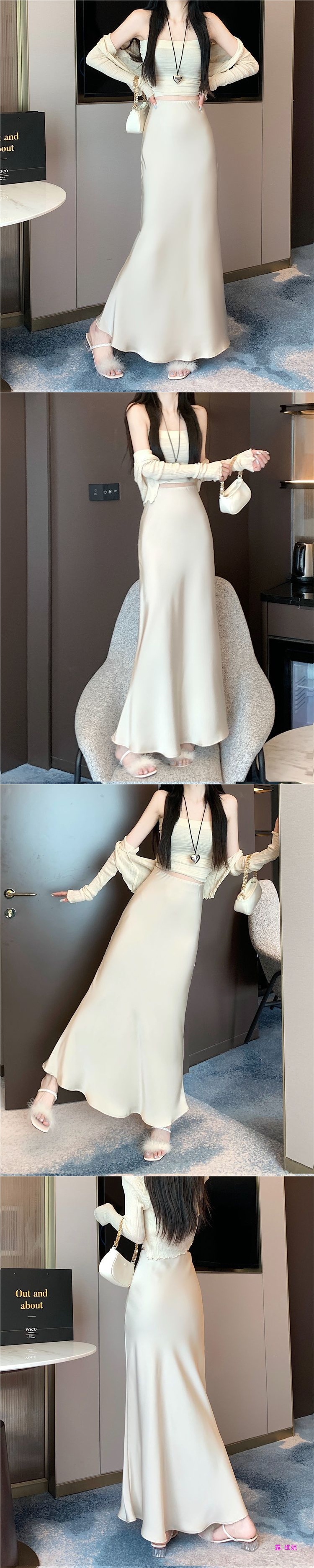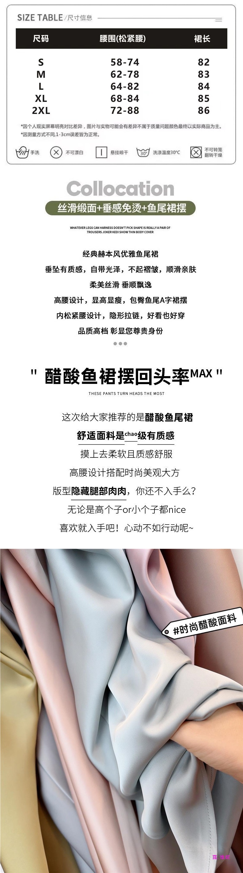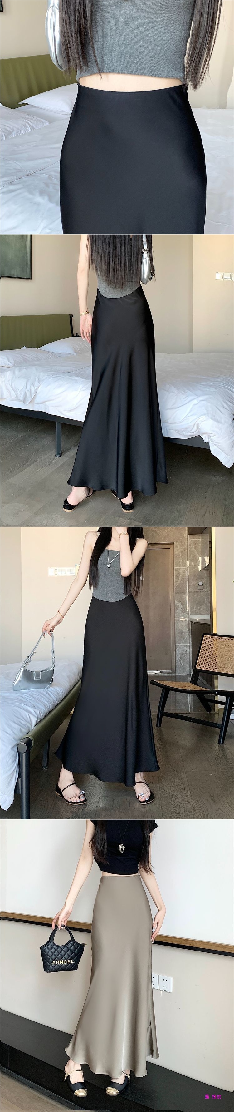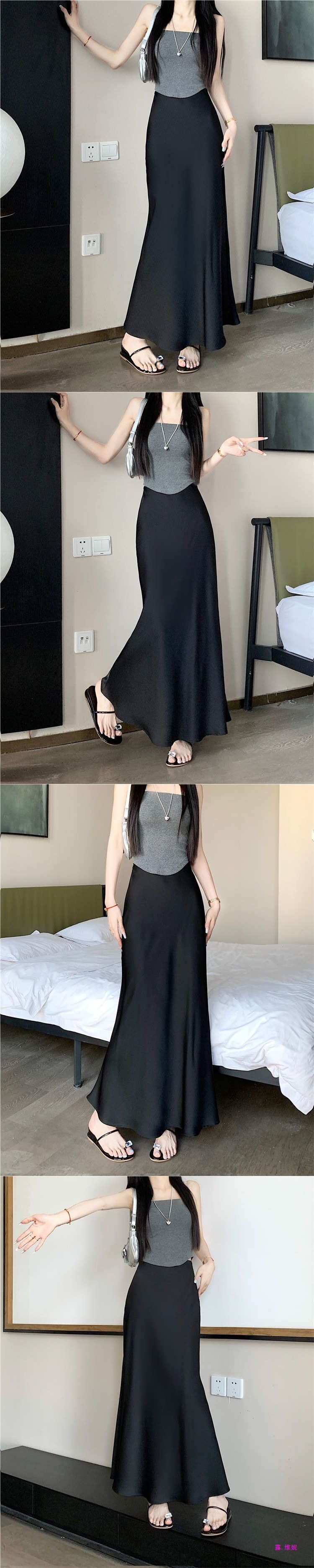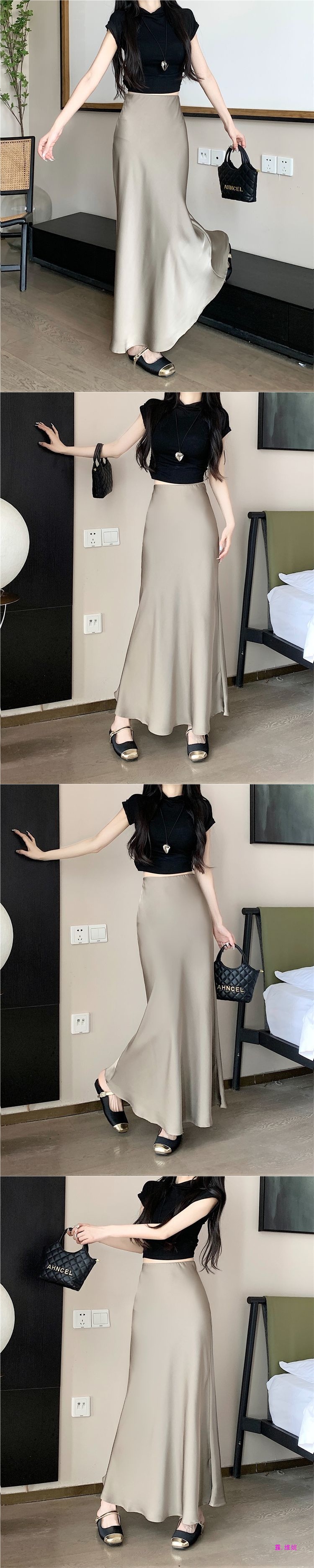 サテンプリーツスカート 2025 夏の新ミッドレングススカート多用途ハイウエスト気質スカート夏