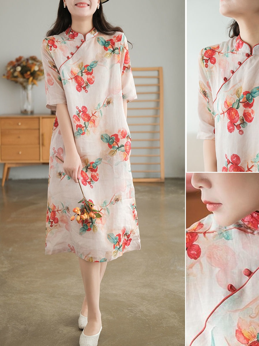 改良されたチャイナドレス 2025 夏の新しい女性のレトロ文学エスニックスタイル年齢を減らす西洋スタイルの綿とリネンのスカート