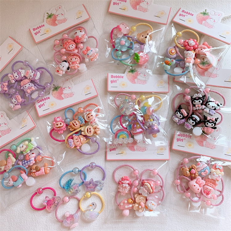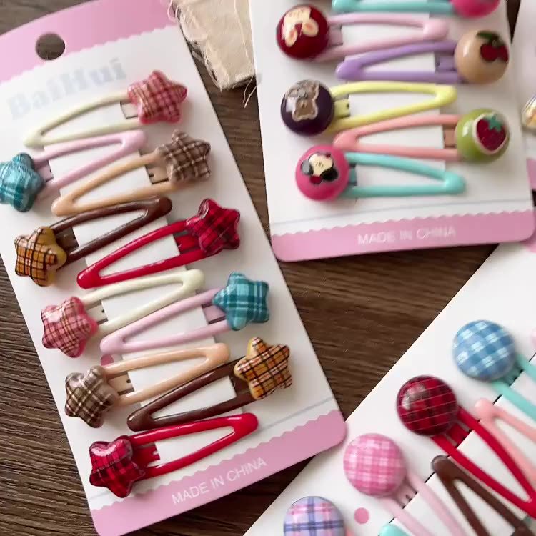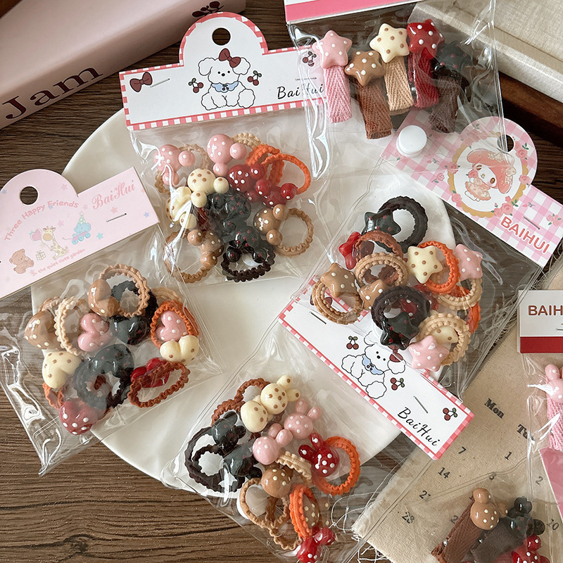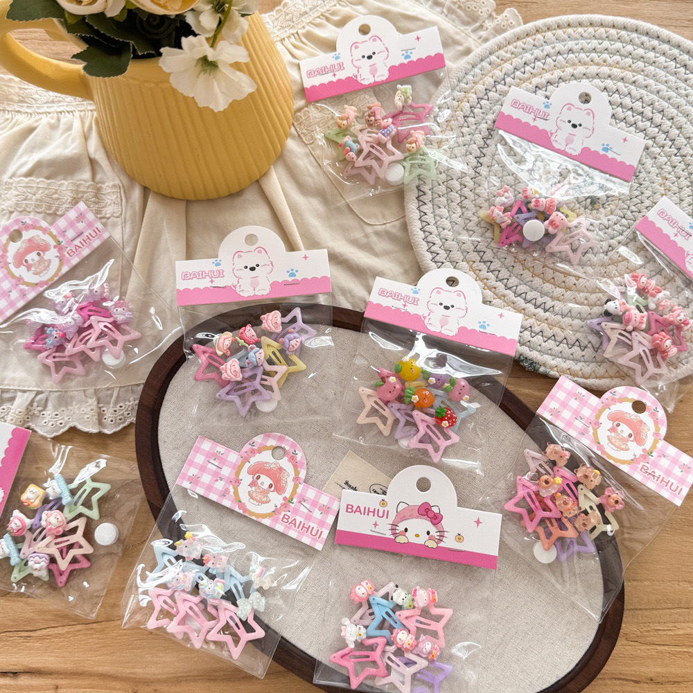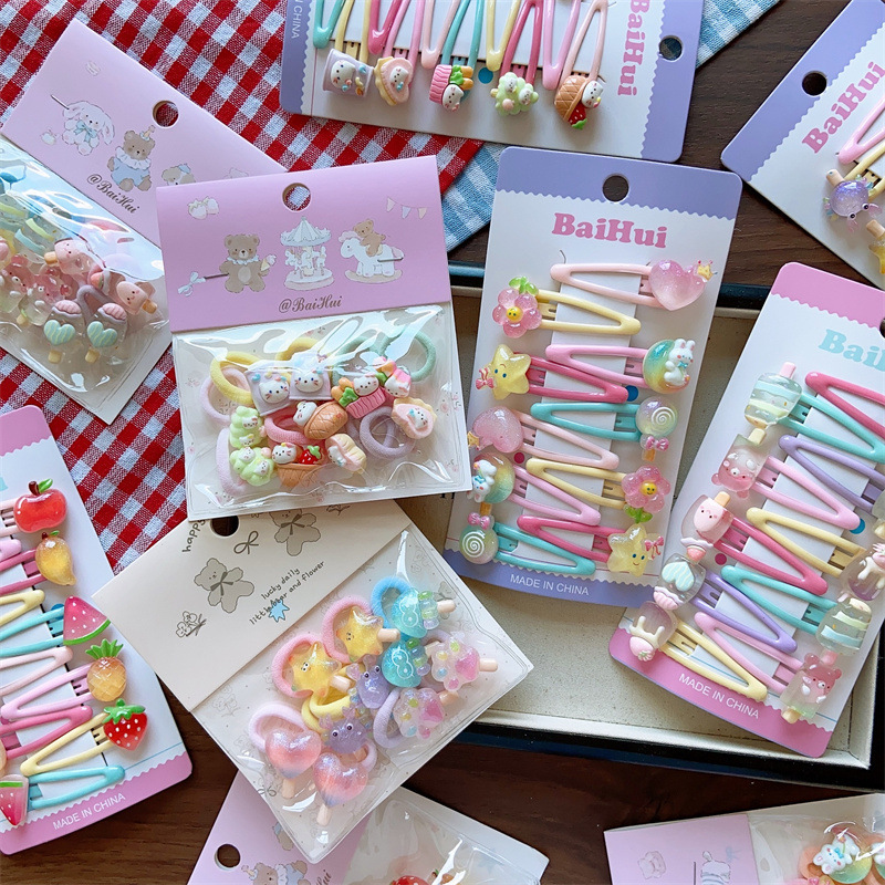 儿童可爱糖果色卡通动物BB夹女童花朵透明桃心花边拇指发圈袋装