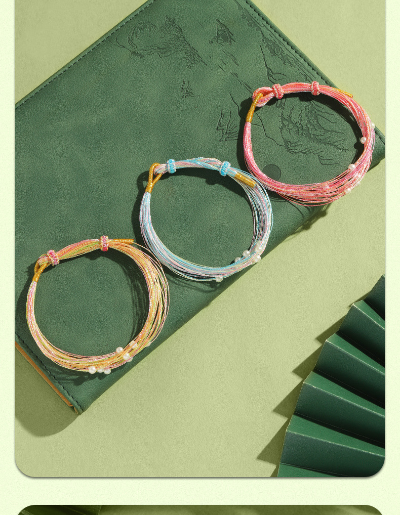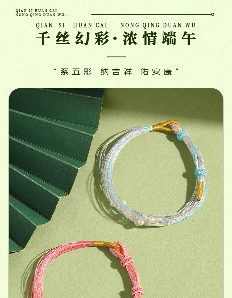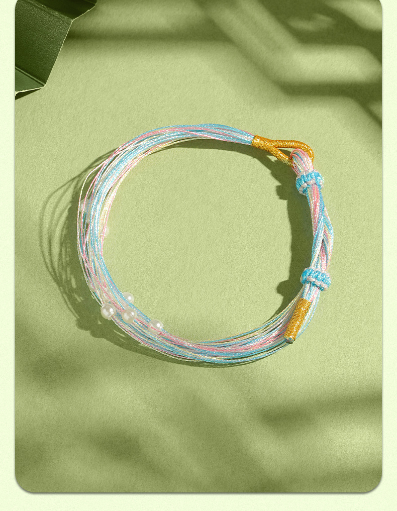 端午節のカラフルなロープブレスレット手織りカラフルな蝶のブレスレット模造真珠の五色糸千の糸のロープブレスレット