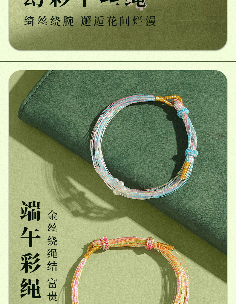 端午節カラフルなロープブレスレットシンプルなカラフルなハンドロープ露店景勝地イベント小さなギフトシングルビーズ赤いロープ卸売