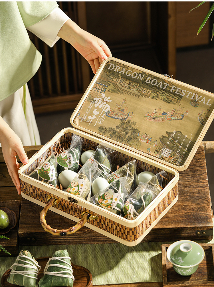 ちまき礼箱空箱2025新端午節包装箱竹編みかご中国式ギフト箱プレゼント手提げかご