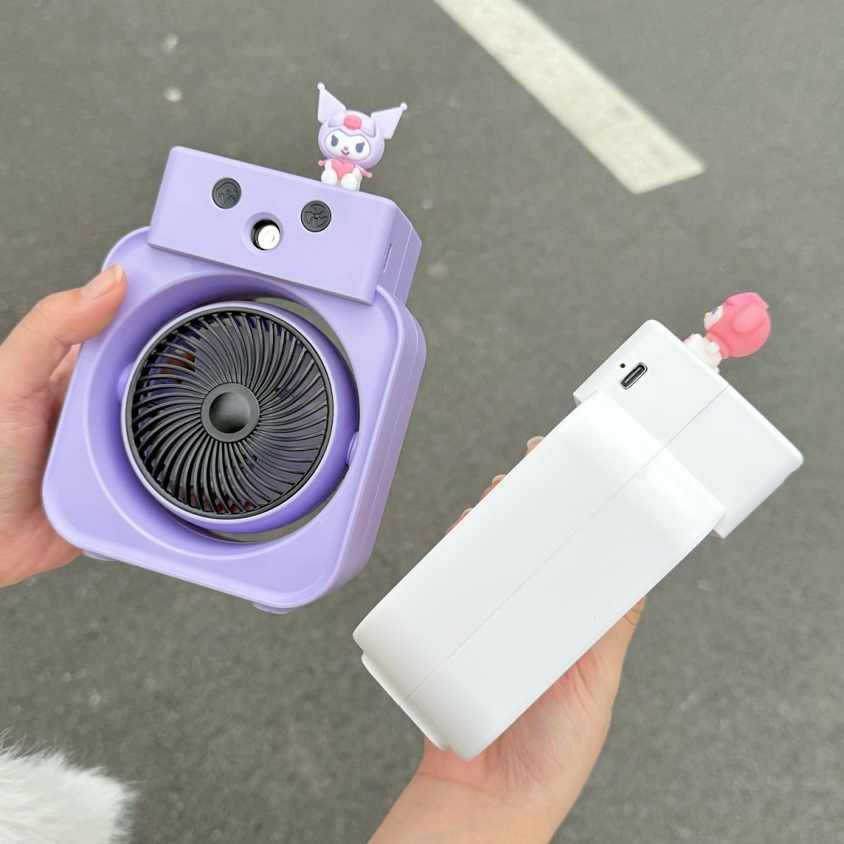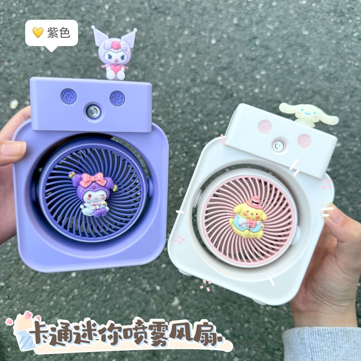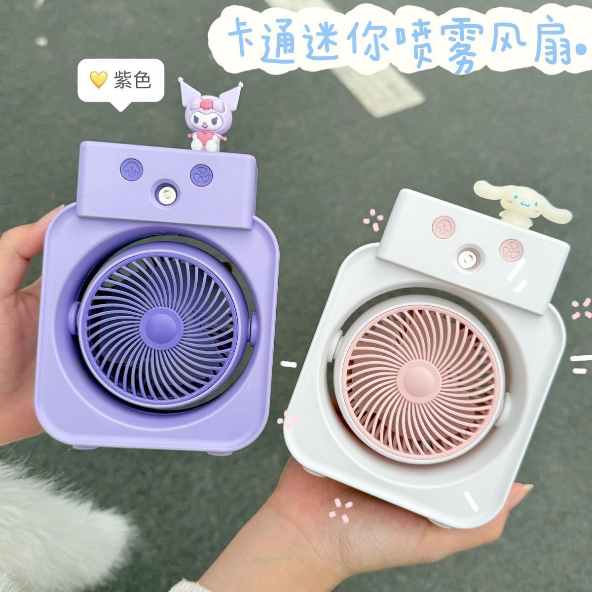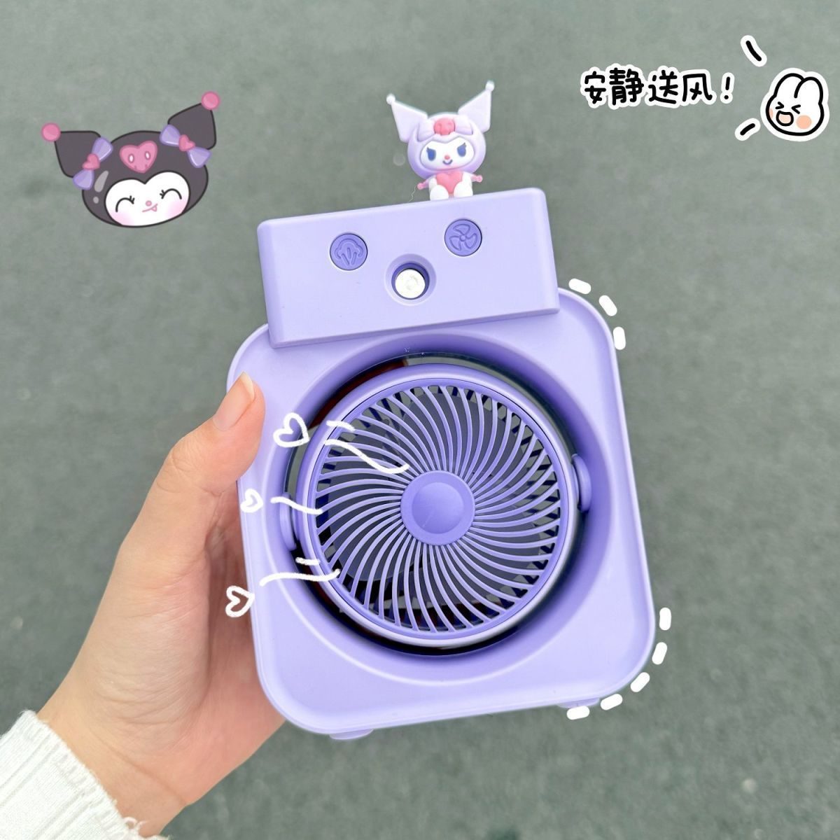 Linglong 漫画ミニデスクトップスプレーファン寮かわいい学生寮小型ファン小型テーブルファンポータブル充電