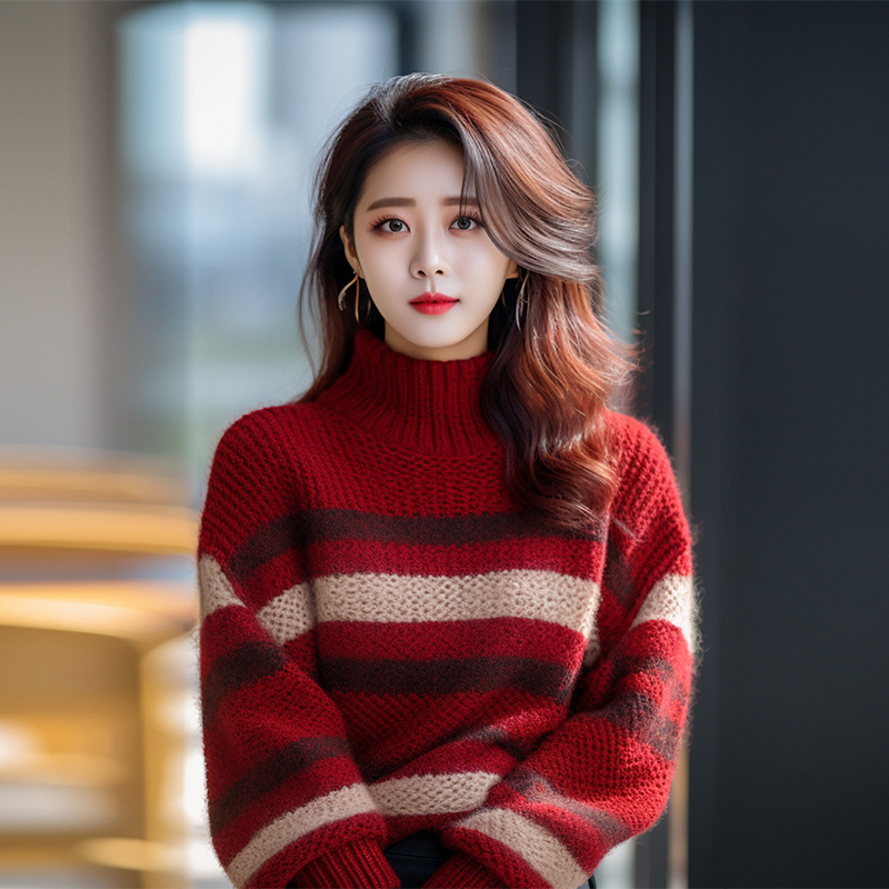 秋冬の太ったmm200斤のセーターの女性の赤い泡の袖の高級感のメリヤスの底のシャツはゆったりしていてやせている上着の潮が見えます。