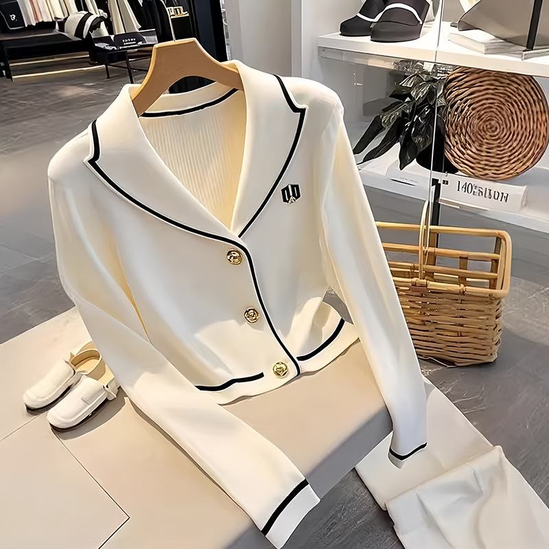 韓国系chic小香風白いニットカーディガンのショートシャツは初秋に高級感のある上着を着ます。