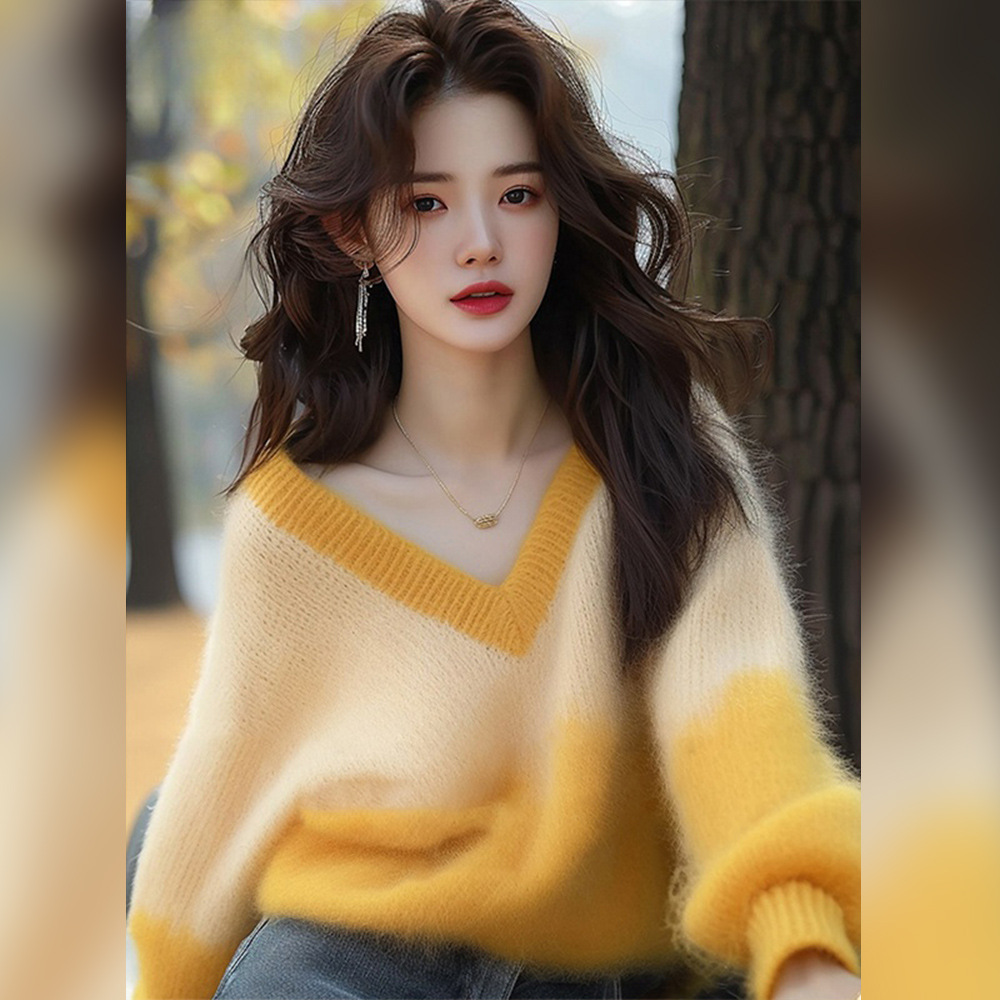 黄色のセーターは怠惰で高級感があります。