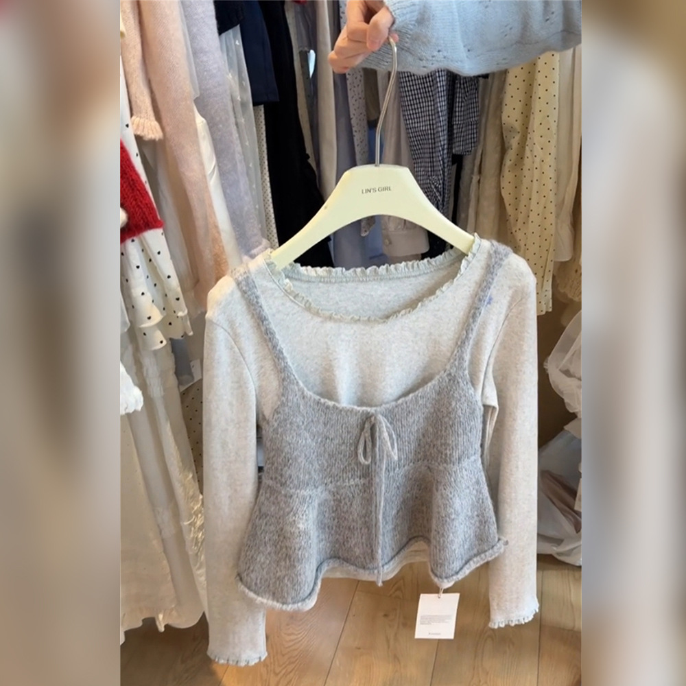 ピンクの丸首のセーターの女性2024の新型の早秋は韓国系の雰囲気感の独特な上着を着ます。