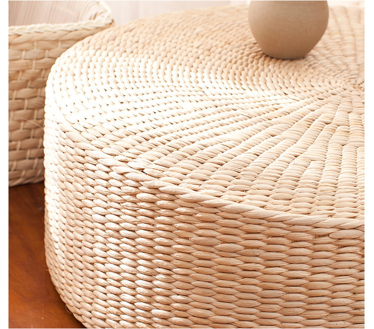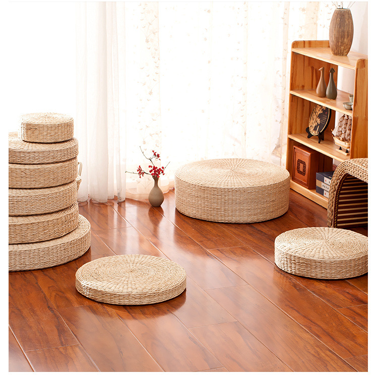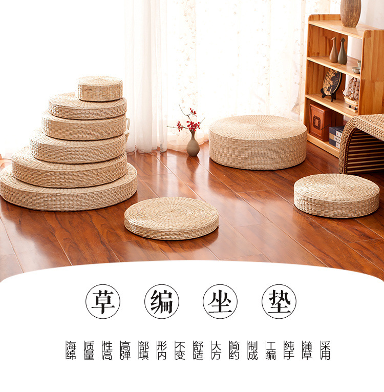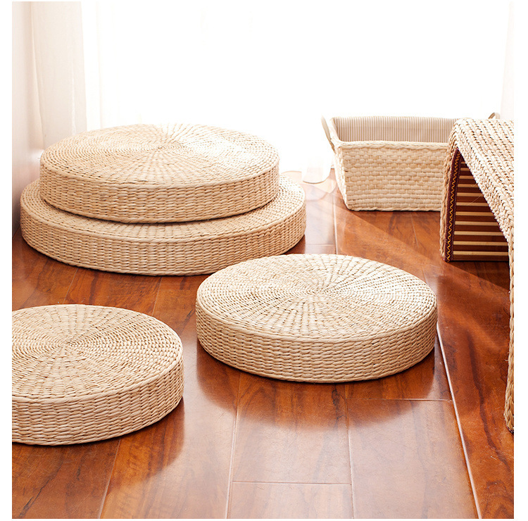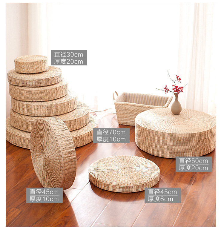 丸い布団の厚いクッション、手作りのススキ織りの床の怠惰なクッション、バルコニーの茶室の畳の出窓クッション