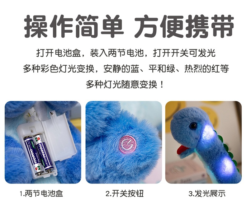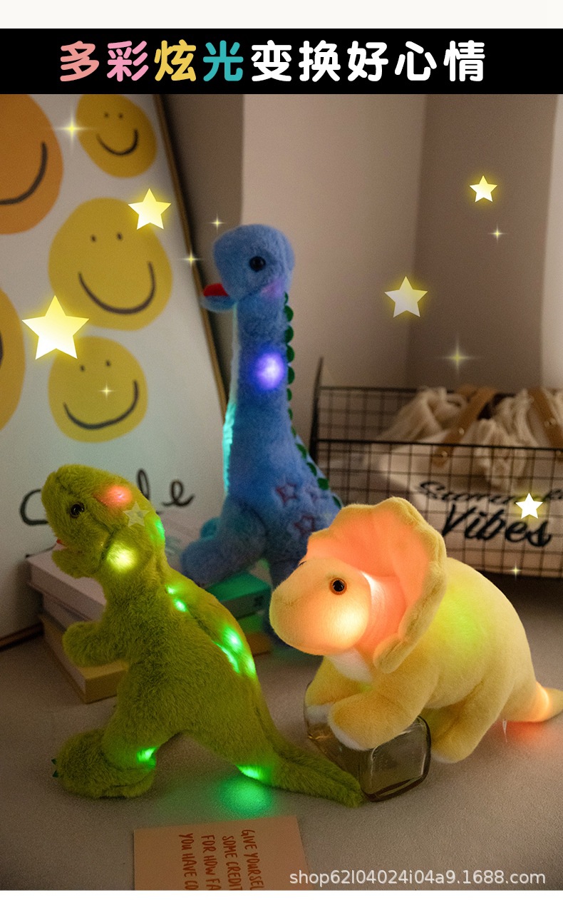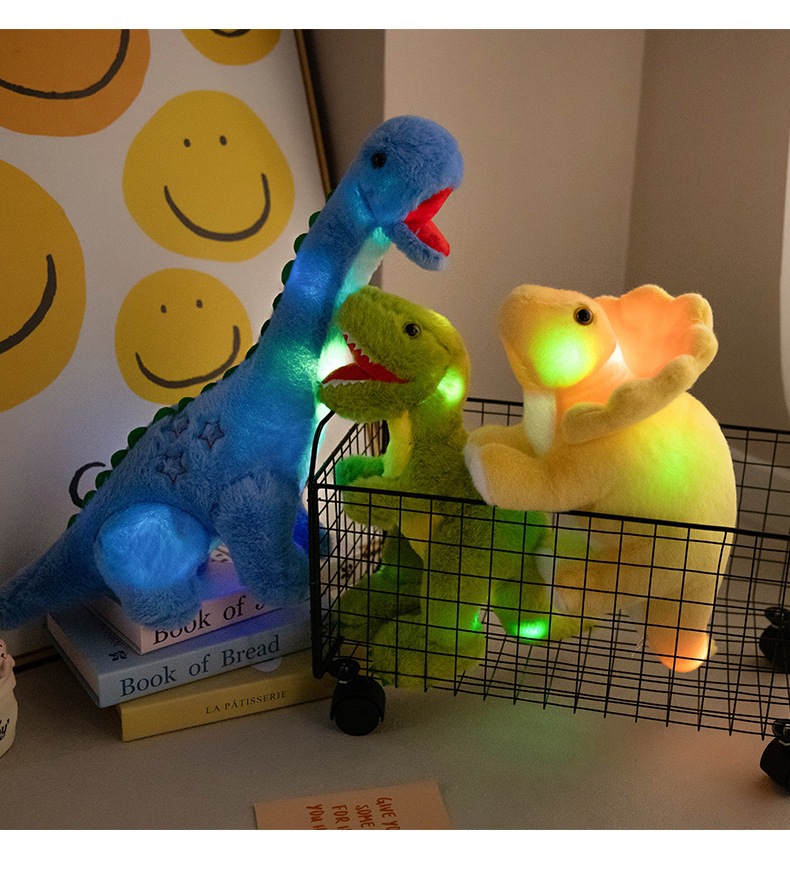 模擬かわいい発光恐竜人形トリケラトプスティラノサウルスロングネックドラゴンぬいぐるみ人形子供のギフト