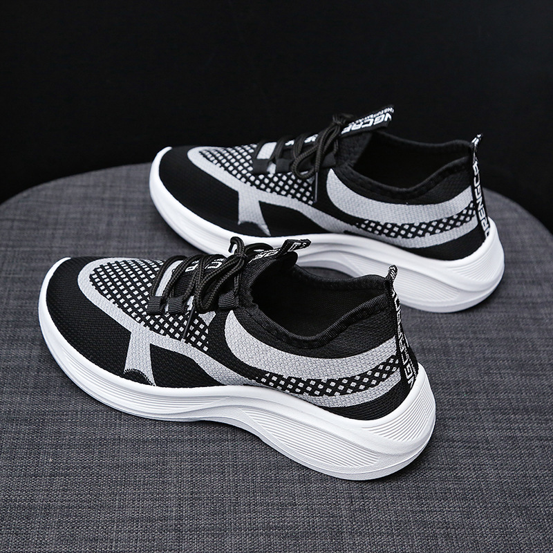 2025夏のスポーツレジャー女性靴飛織ネット面の通気性が快適で柔らかい底ランニングキャンパス風学生靴