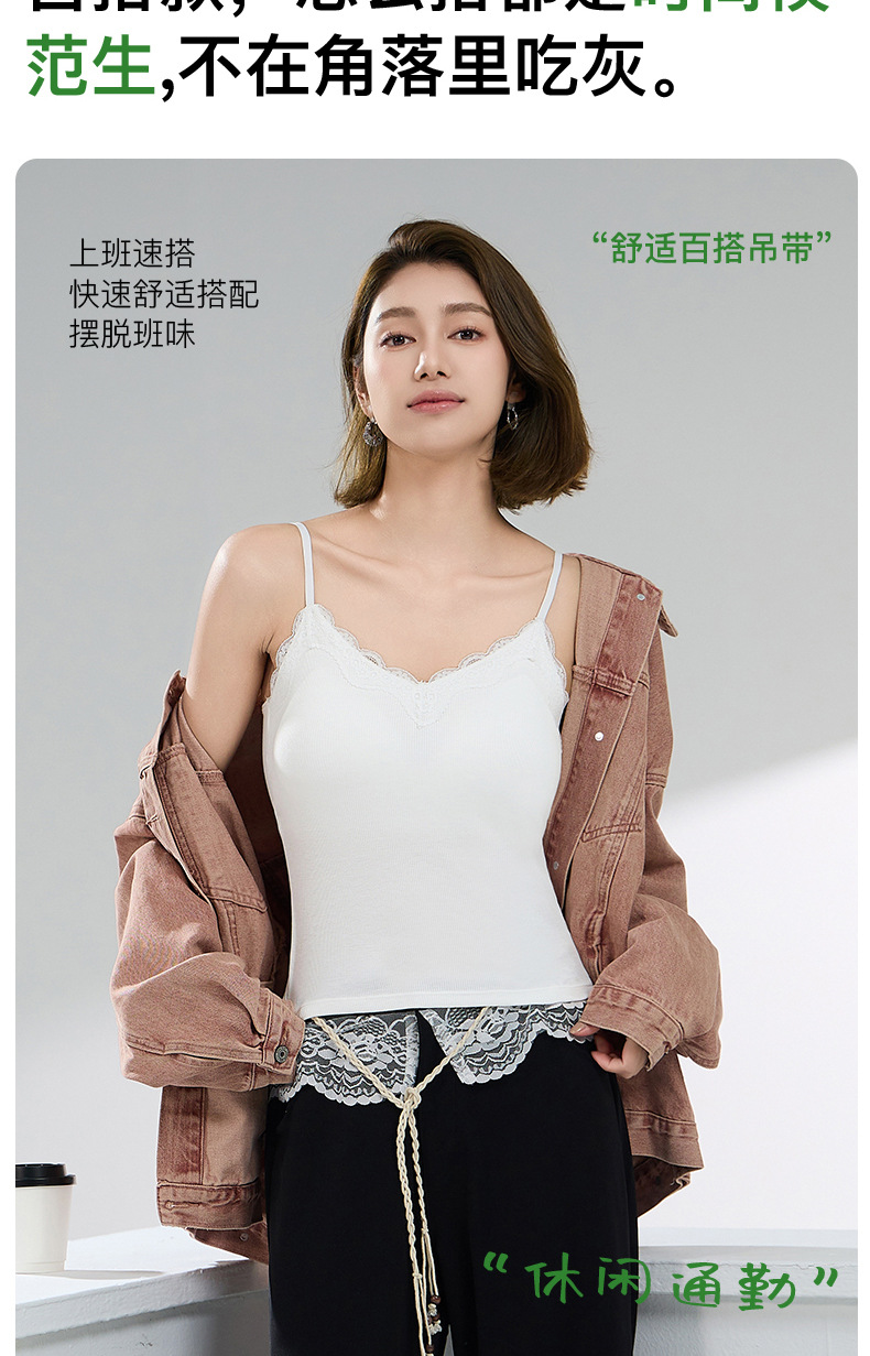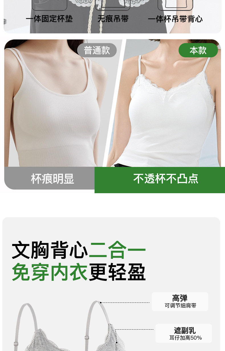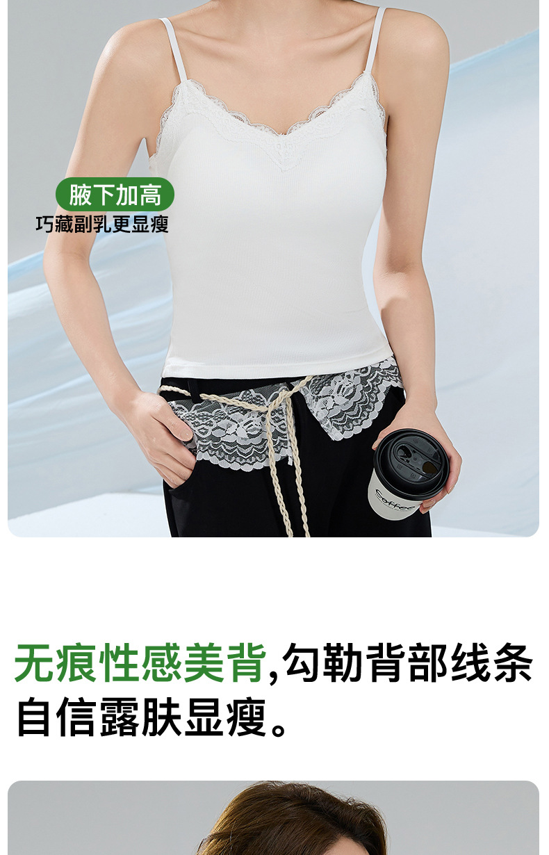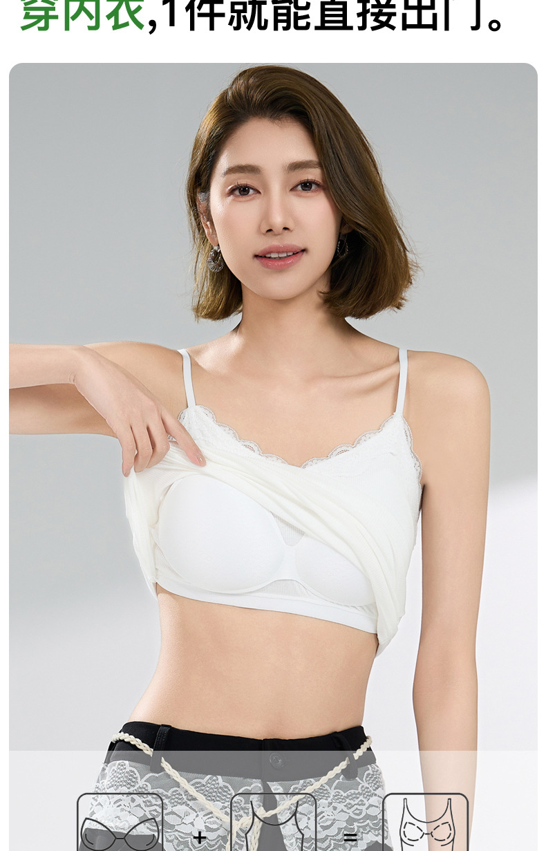 大码吊带内搭胖mm缎面轻奢高级感蕾丝背心女美背带胸垫一体式文胸