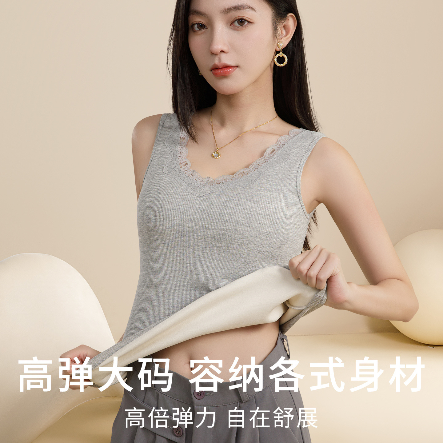 加肥加大码蕾丝v领保暖背心女加绒加厚胖mm200斤内搭冬季打底内衣