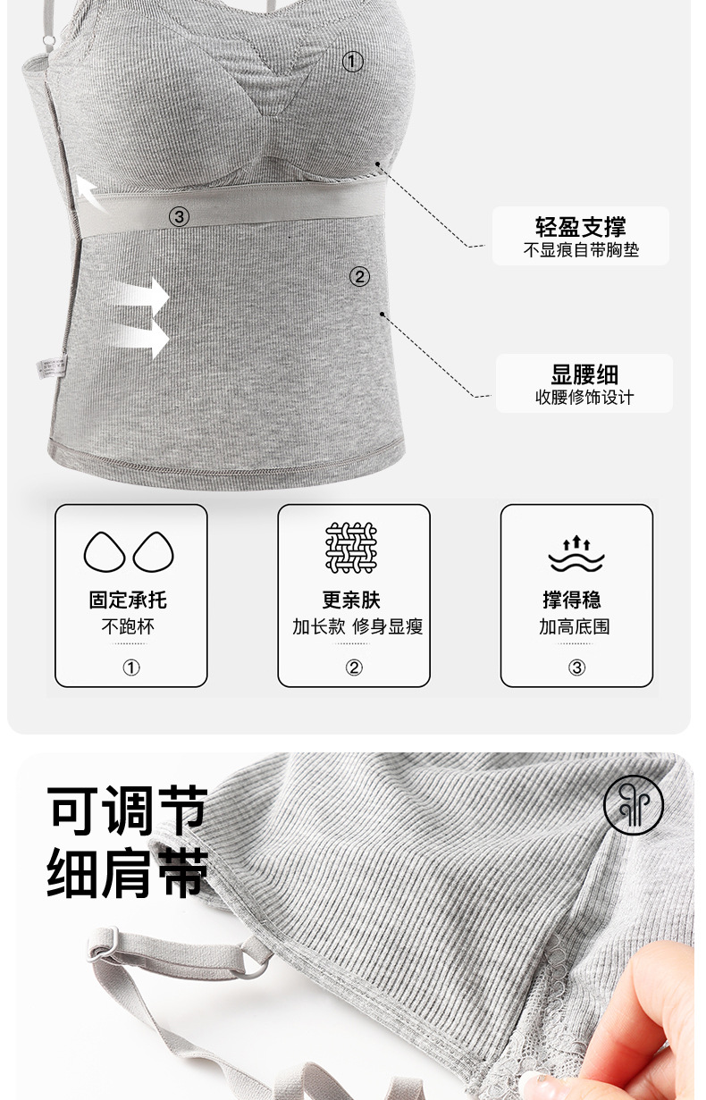 2025新型の大きいサイズのmmのサスペンダーの胸のパッドの一体の固定の美背の快適な上着の女性の中で底を打ちます。