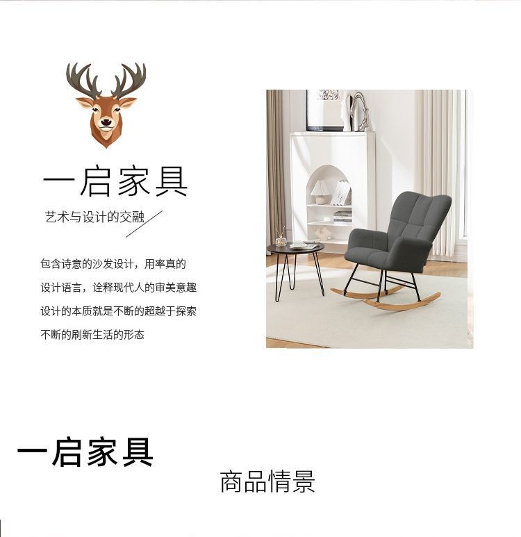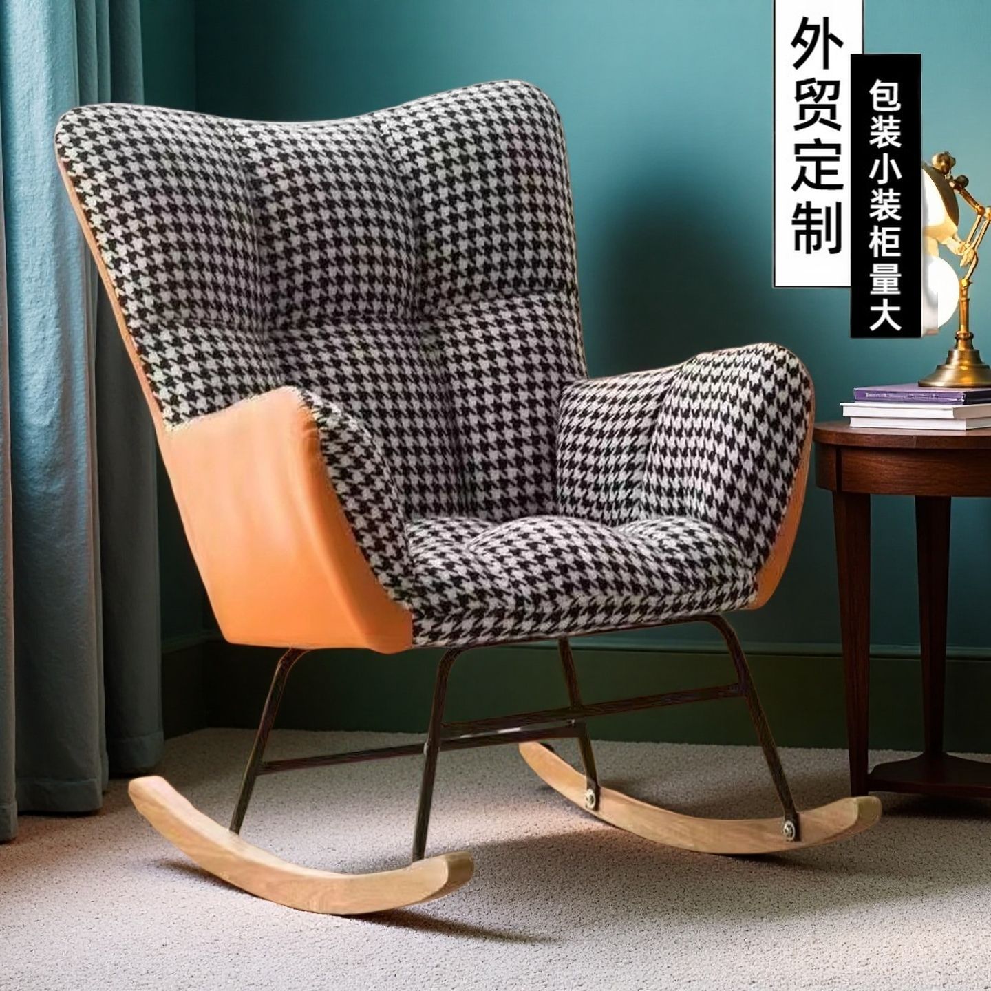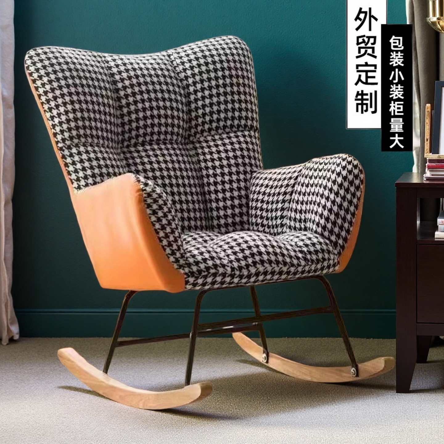 北欧風家庭用ソファチェア、座ったり寝転んだりできる、シンプルなリビングやバルコニー用布張りのリラックスチェア、一人用ロッキングチェア