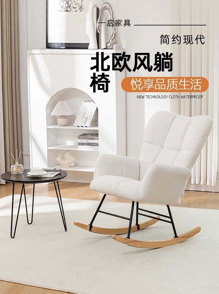 北欧のロッキングチェア家庭用リビングルームのシングルルームの子羊のベランダのレジャー寝室の昼寝の椅子のネットのロッキングチェア