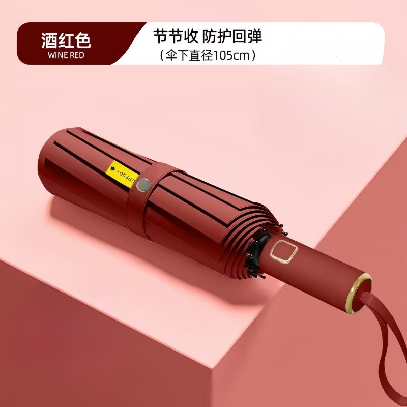 新しい10本骨全自動ハイエンドログハンドル日焼け止め傘メンズハイエンドビジネス折りたたみ傘はロゴを印刷できます
