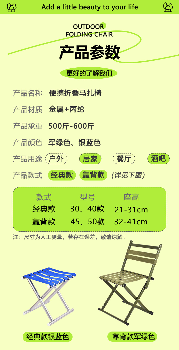 特厚折叠椅凳马扎靠背便携式耐用钓鱼凳烧烤加高火车旅游加厚户外
