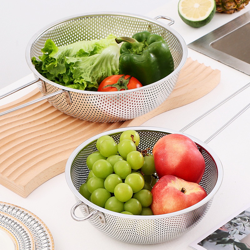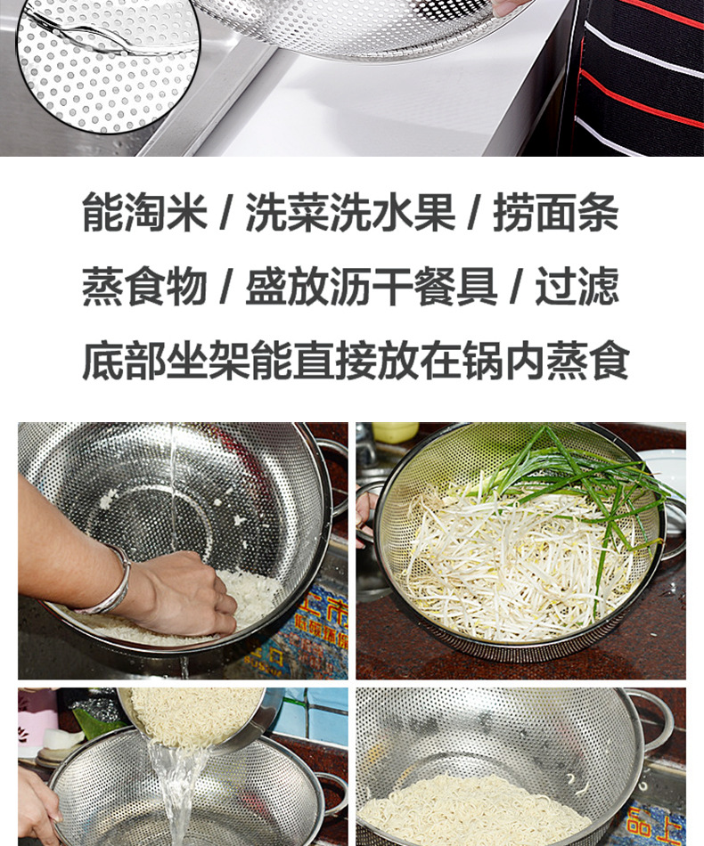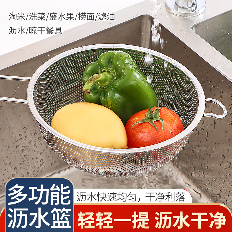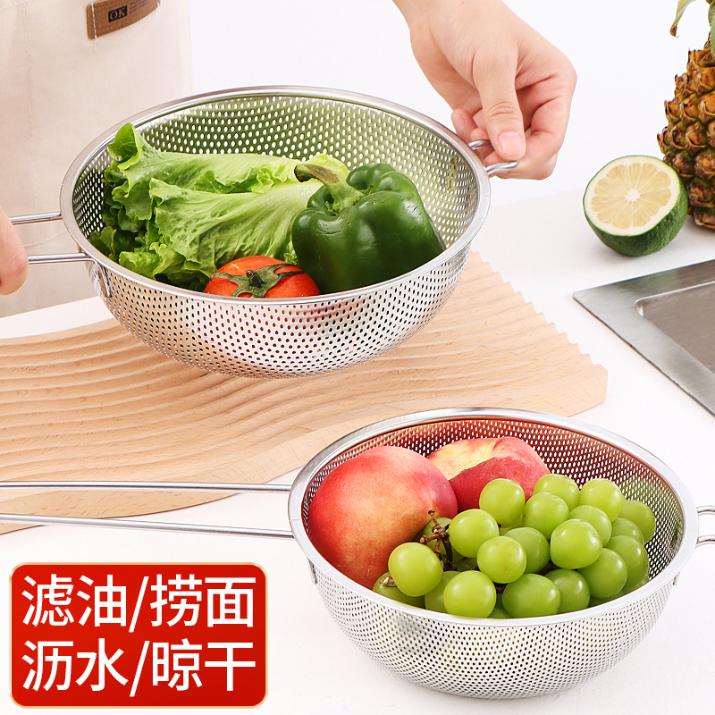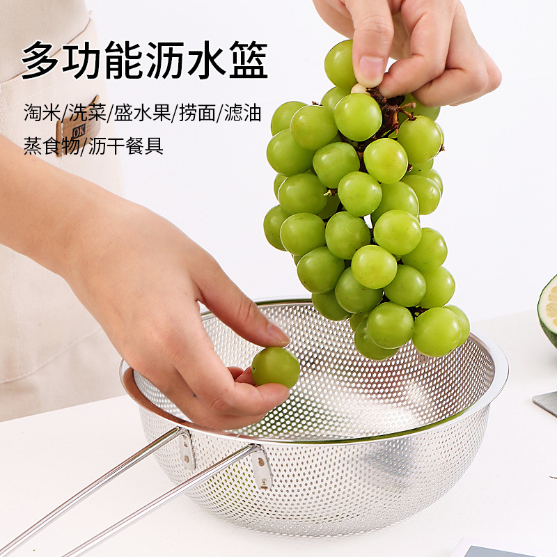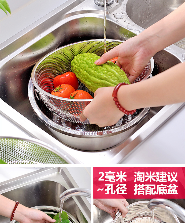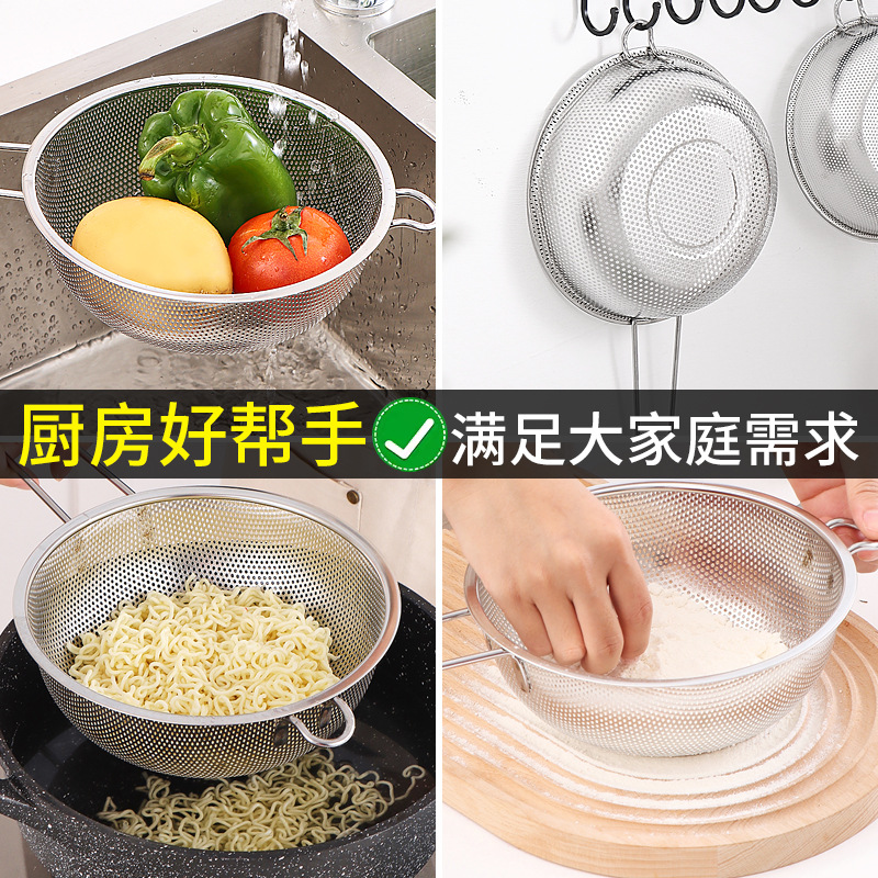 ステンレス製水切りかご、細孔多目的かご、米と野菜の洗いかご、米ふるい、水切りかご、屋台、10元店の供給