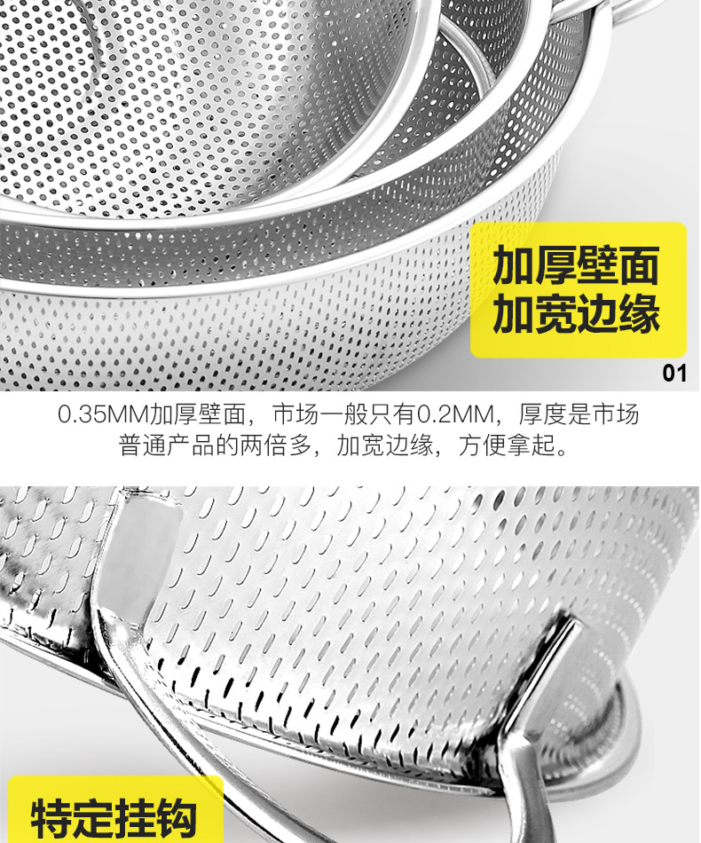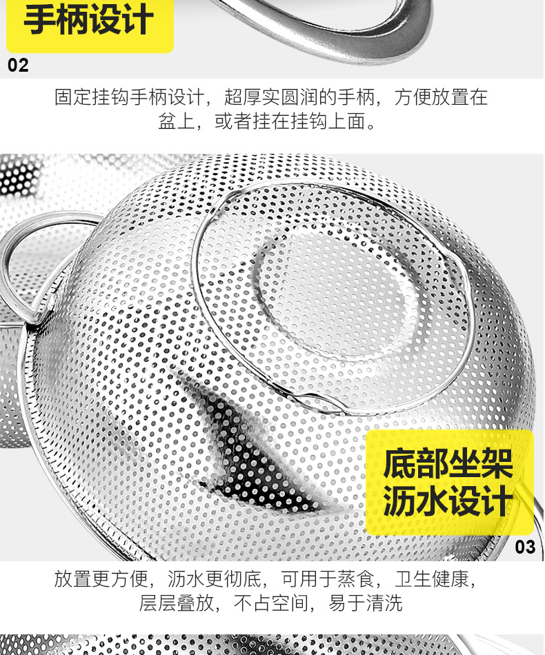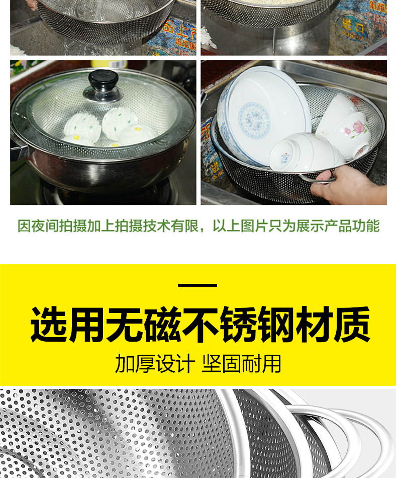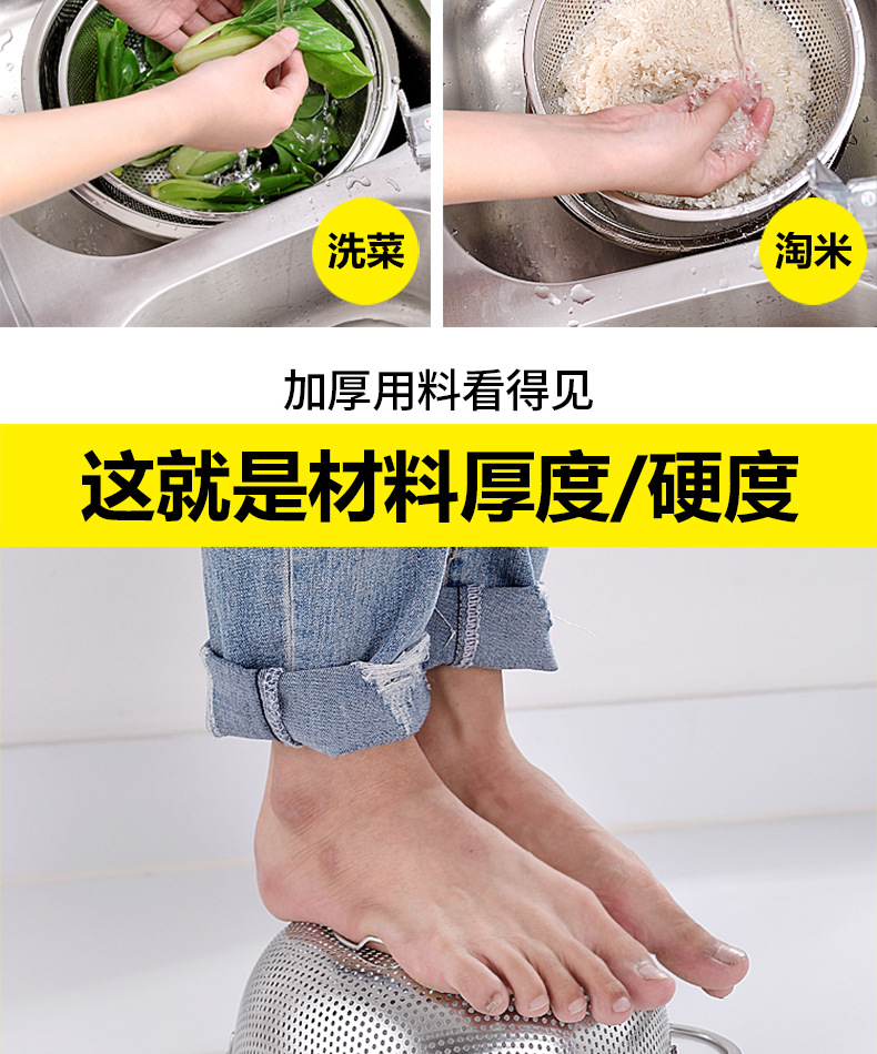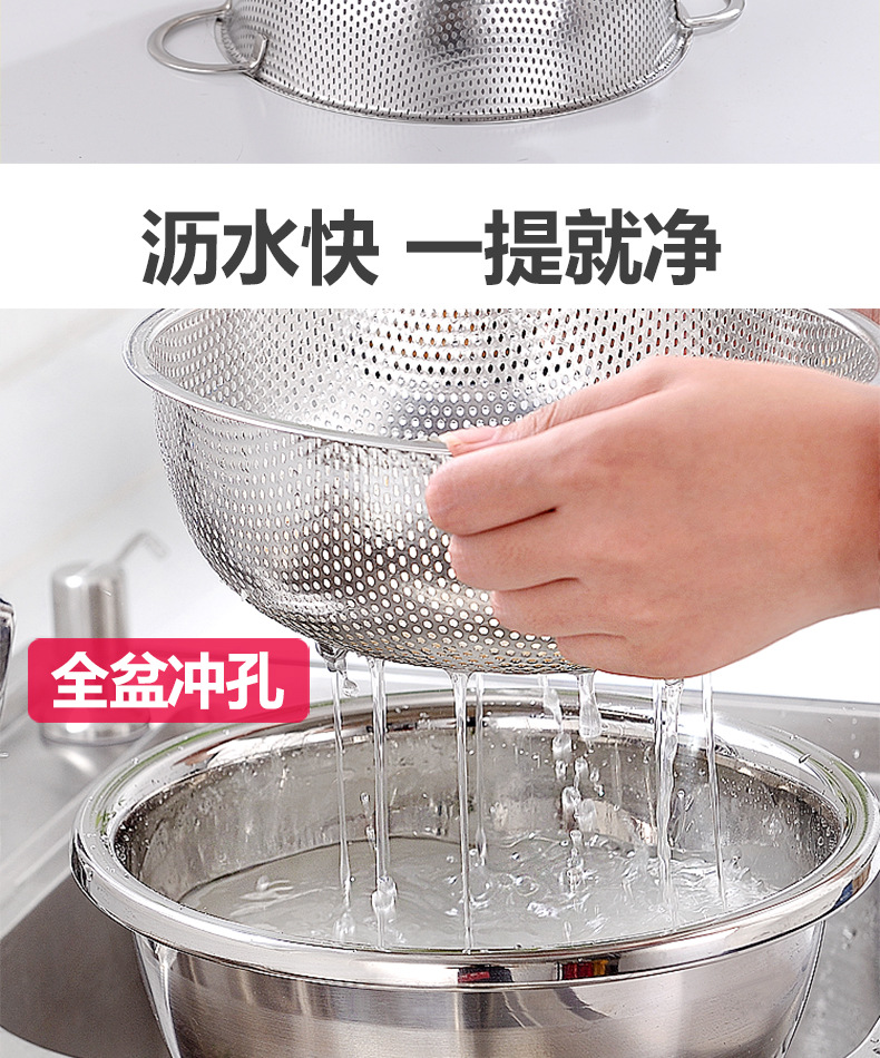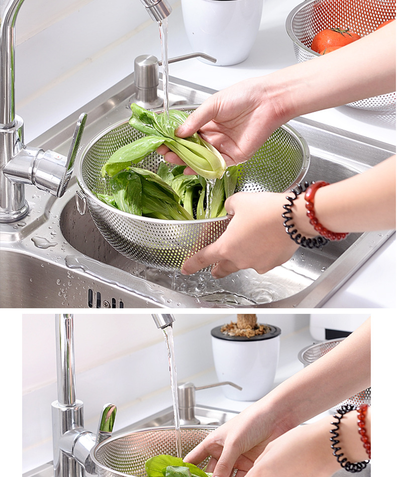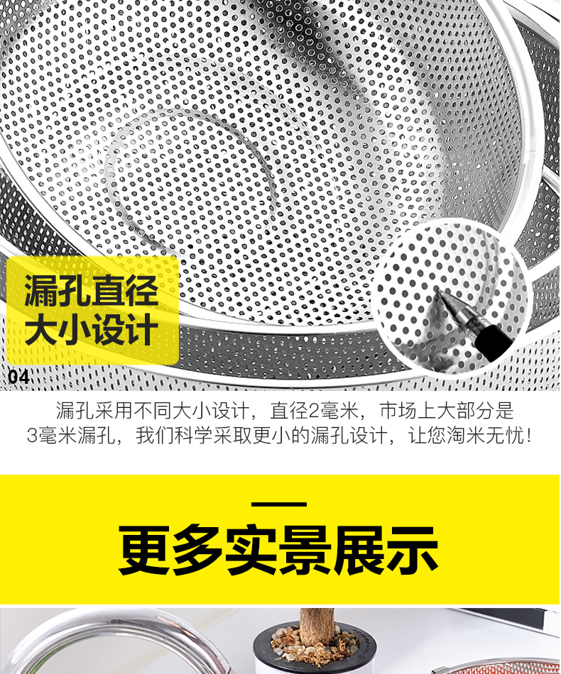 ステンレス製水切りかご、細孔多目的かご、米と野菜の洗いかご、米ふるい、水切りかご、屋台、10元店の供給
