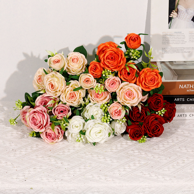 家の装飾の置物の6頭の貴妃のバラは花の花束の撮影の道具をシミュレーションします。