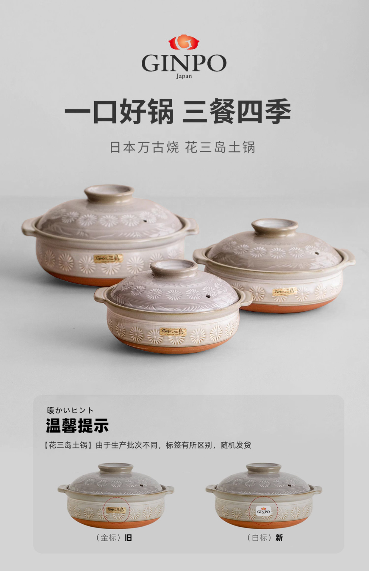 日本輸入花三島土鍋万古焼土鍋ガスコンロ家庭用陶磁器鍋3-4