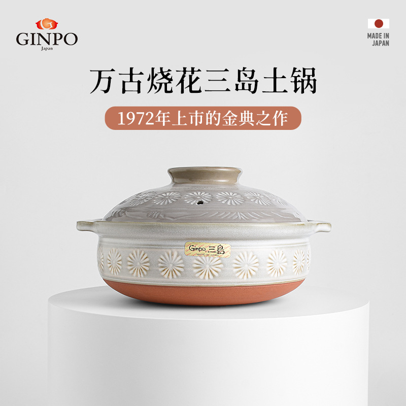 日本輸入万古焼花三島大容量陶土スープ鍋日本式家庭用多機能炊飯スープ鍋