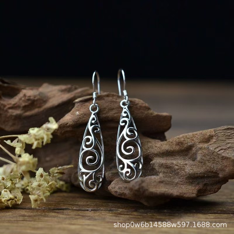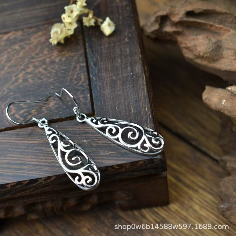 新款欧美跨境外贸复古耳坠雕花宫廷耳环民族风镂空花纹耳饰批发