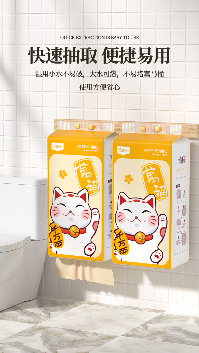 富豪12提悬挂抽纸家用卫生纸抖音同款干湿两用纸巾面巾纸整箱代发