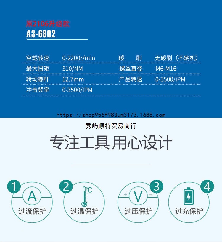 大芸A3-6802ブラシレス電動レンチ原装ベアメタル40S66D84Dリチウム電池通用電池