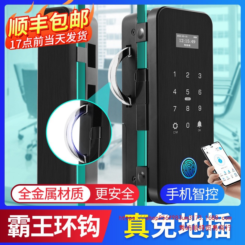 ガラスドアパスワードロックオフィス指紋ロック両開きドアパンチフリースマート電子ロックシングルドアアクセス制御ロックフレームレス