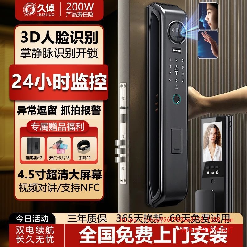 JiuZhuo 全自動真の 3D 顔認識ビジュアルキャットアイホームセキュリティドアスマートドアロック手のひら静脈指紋ロック