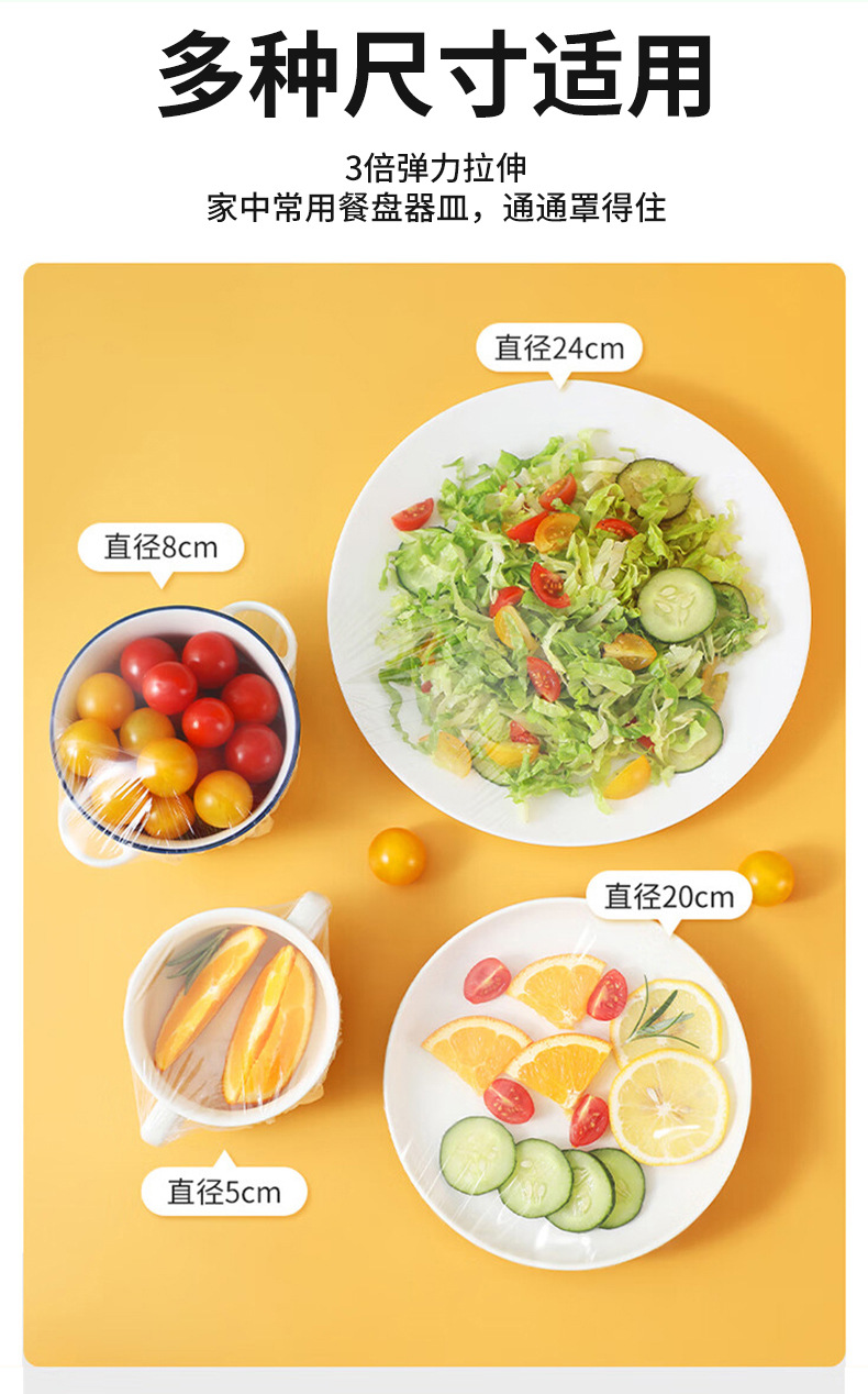独立包装100本使い捨てラップカバー食品級キッチンラップカバー食器カバー付き大型フードカバー