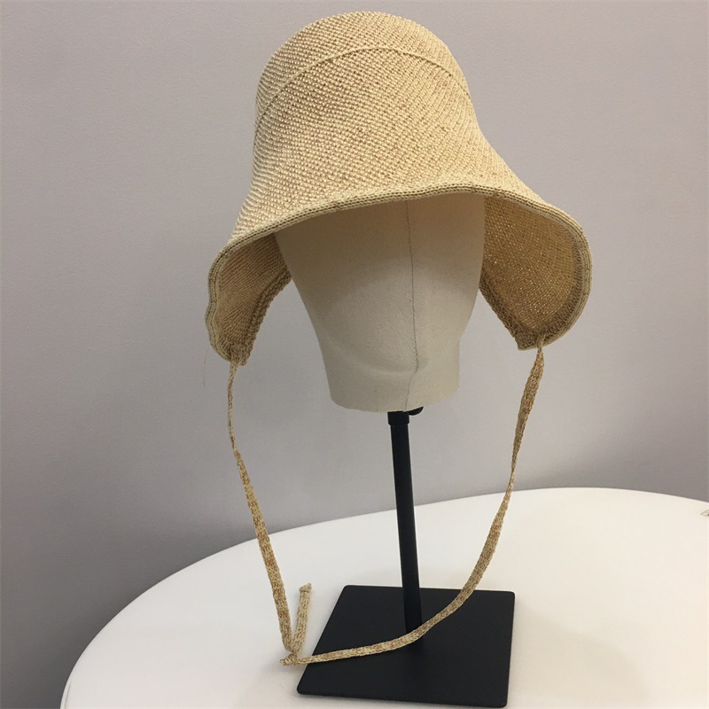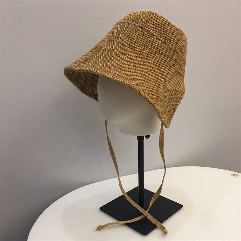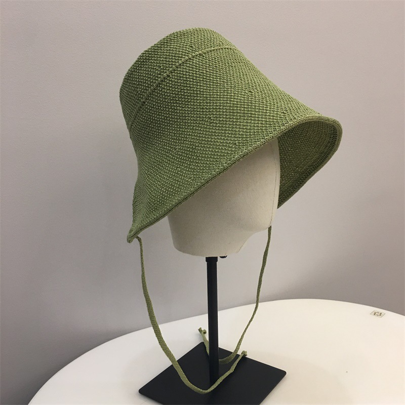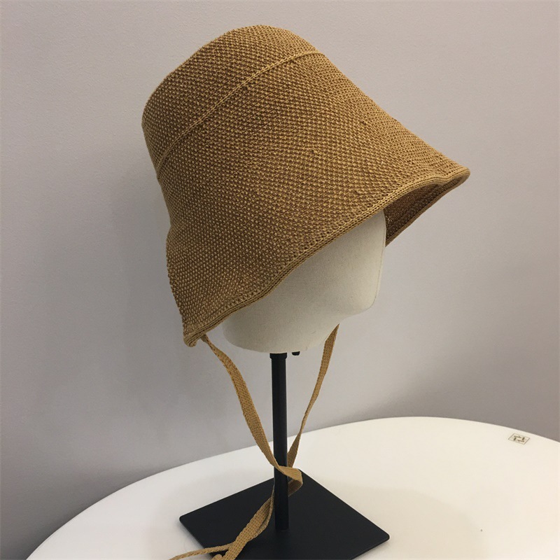 ストロー通気性フィッシャーマンハットレディース韓国麦わら帽子日本製オールマッチバケットハット日焼け止めサンハットベル型シンプルハット