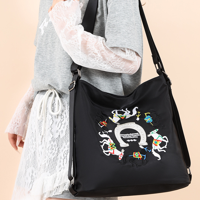 ナイロン布大容量バッグ女性2025新型シングル肩斜め掛けランドセル多機能通勤バッグ