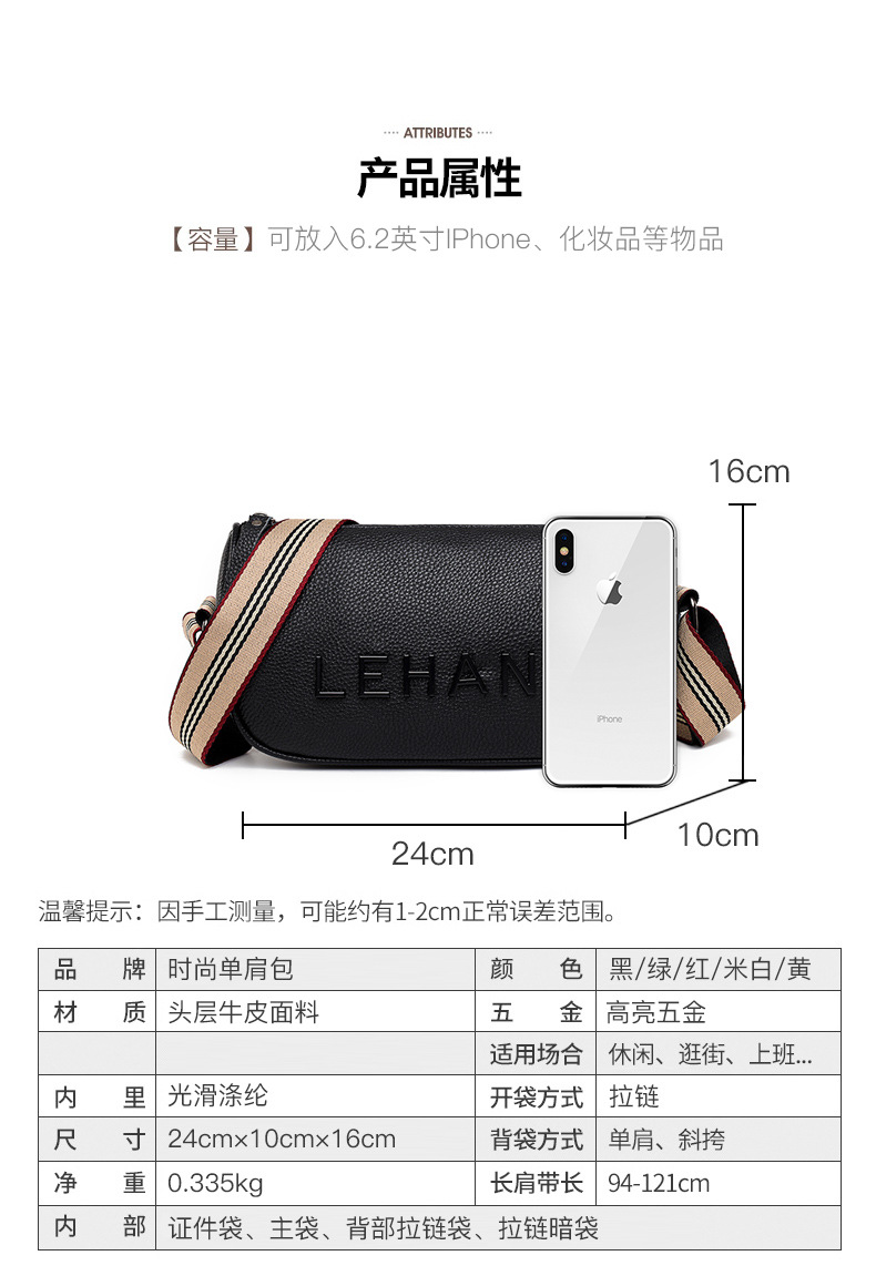 新しいソフトレザーレターレディースクロスボディバッグ大容量カジュアル韓国版ワイドバンド脇の下包頭層牛革バッグ