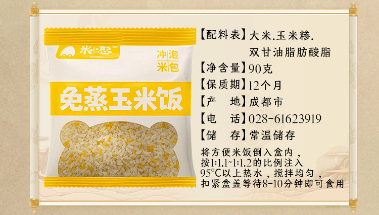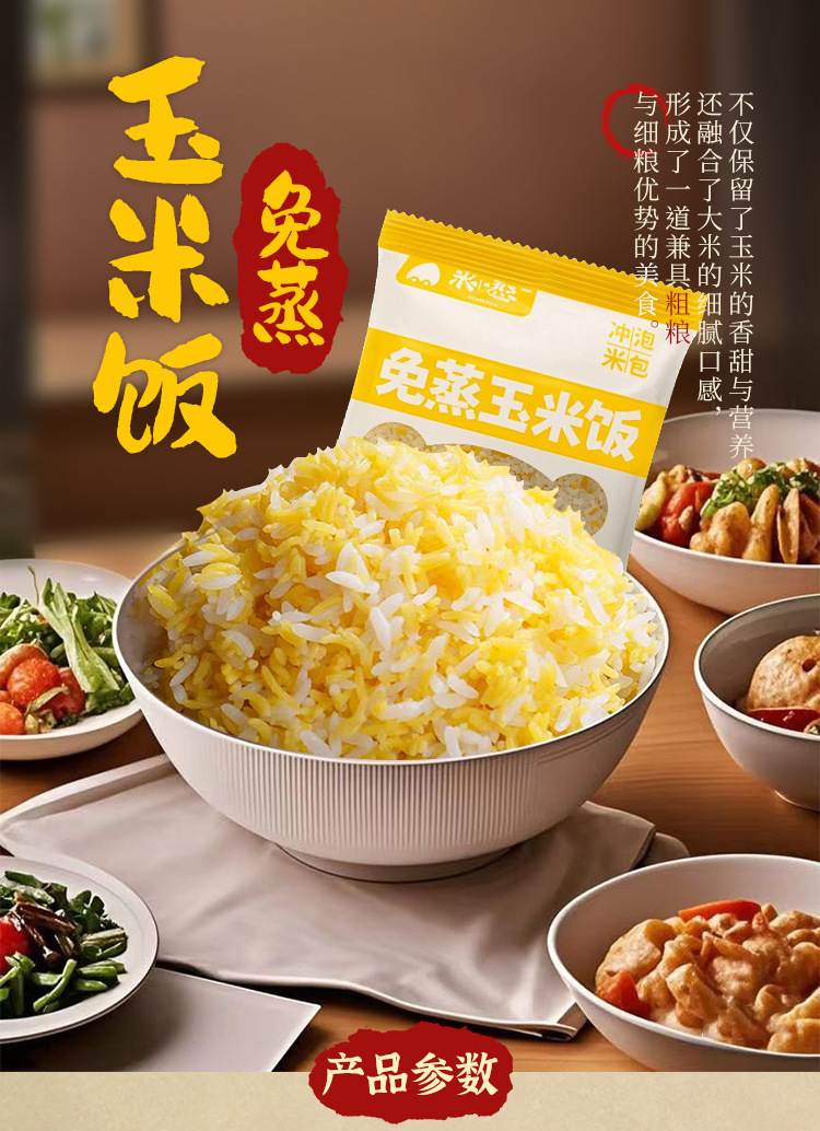 調理不要のコーンライス、便利なインスタントライス、個別袋入り、旅行用、ポータブル、大学生寮、怠け者用ライス