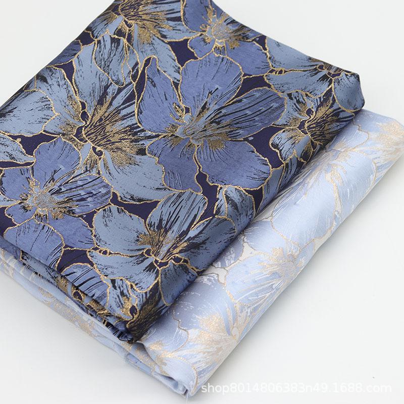 国風新中国式高精密大金花藍色織金色織ジャカード婦人服ワンピーススーツケース生地